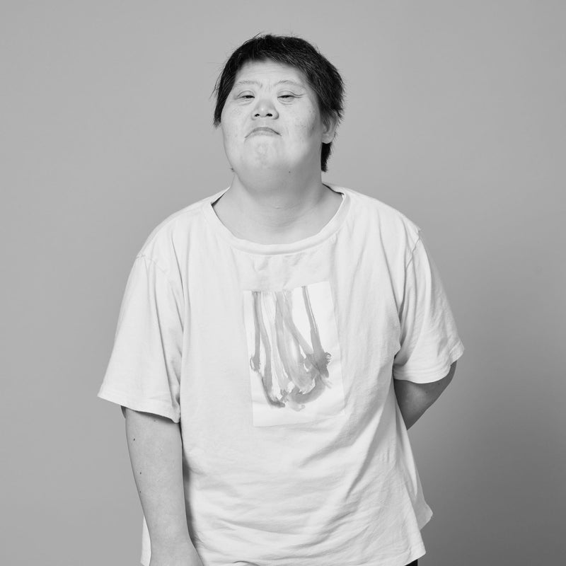 笹山の制作は、スタッフが声を掛けることではじまる。「どうぞ」という一言をきっかけに、彼女は伸びやかに筆を走らせていく。力強い丸や、色とりどりな線。一本一本丁寧に、ぐっと力を込めて、机を覆うように着席した彼女の胸元から外側に向けて線は引かれる。多くの作品は、筆跡が紙からはみ出ており、彼女の力強さとおおらかさが表れている。