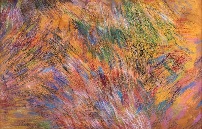 クーピーペンシルやクレヨンを塗り重ねることで作り上げられた作品は、一見すると、素早い鉛筆の動きを要する激しい制作態度を連想させる。しかし実は、彼女の制作は非常にゆっくりと穏やかである。彼女の描き出すひとつひとつの色は、お互いに交じり合うことなく、それぞれにその美しさを主張しながら画面の上に現れ、激しさと静けさが不思議に同居しており、心を惹きつけられずにはいられない。
