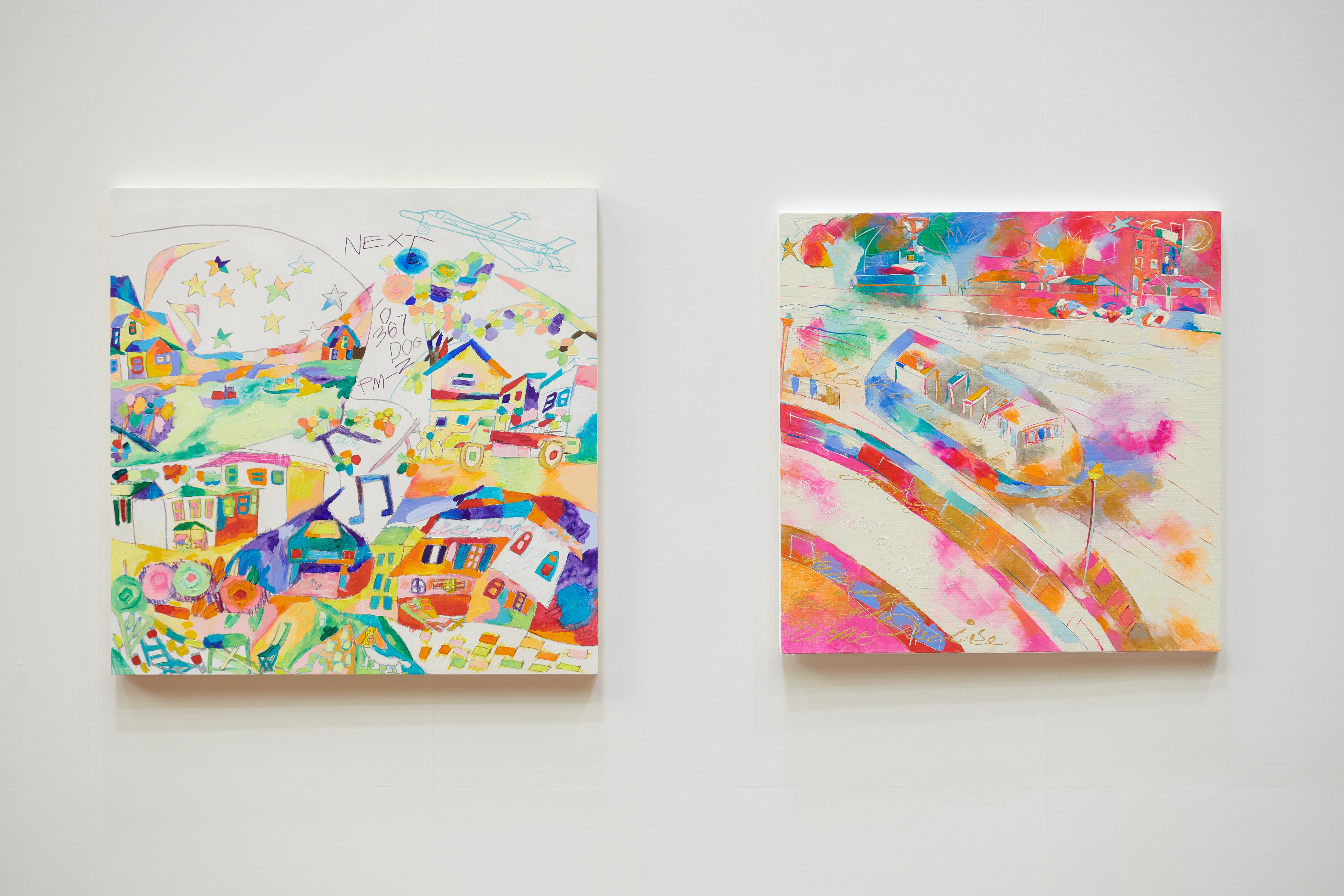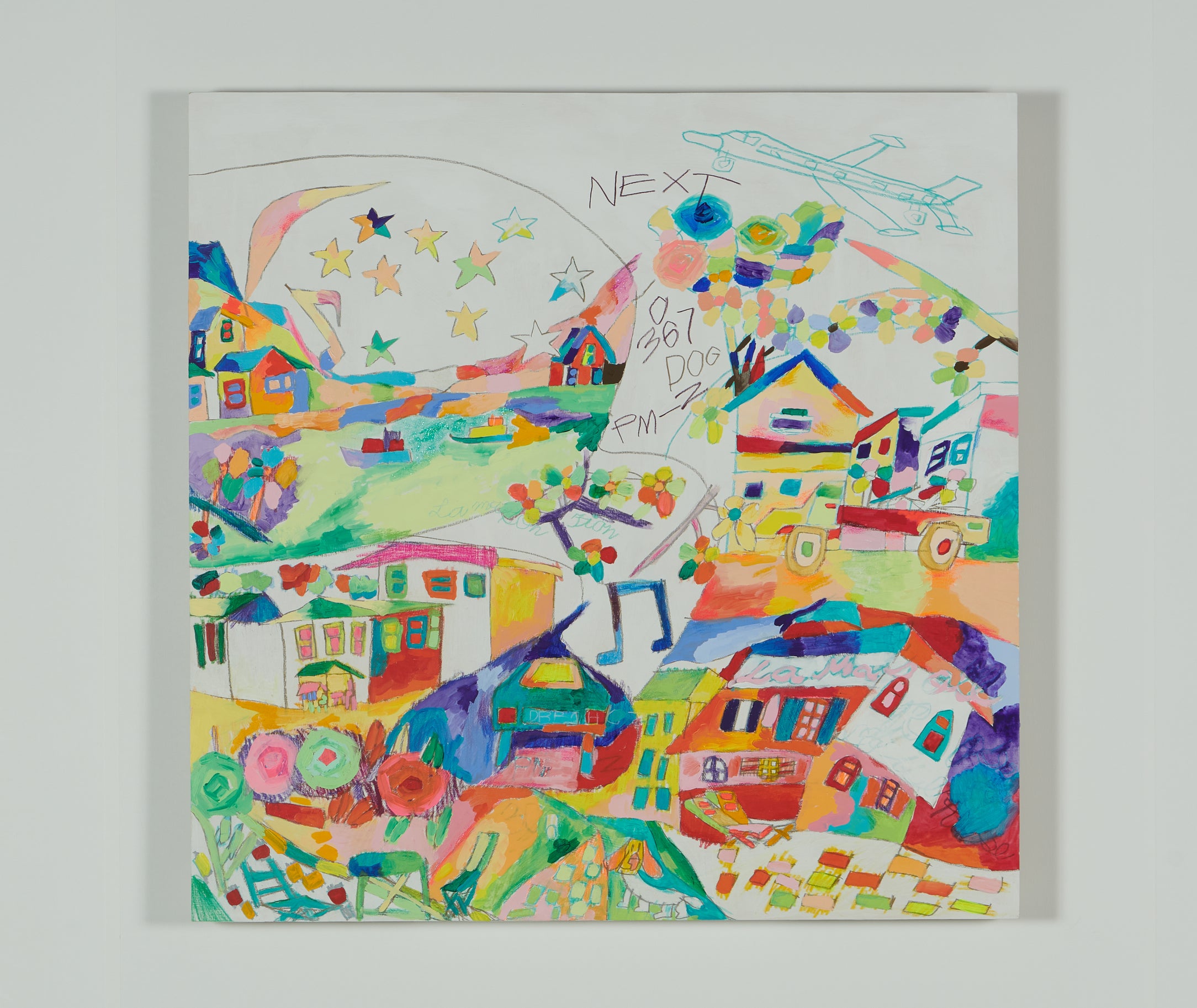 珠美さん:「春の旅」は、さっき話していたようなヨーロッパの風景や、自分の好きな景色を組み合わせてね、夢の国みたいなの。音符とか花とか星とか飛行機が飛んでたりとか、文字も書いてあります。