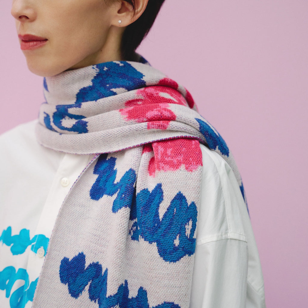秋冬のスタイリングに、さっと巻くだけでアクセントになるロングマフラー。ジャガード織りによって、作品の質感までも忠実に再現しています。異なる風合いの糸を組み合わせることで、軽やかで上品な表情が生まれ、カジュアルなファッションを洗練された印象に仕上げます。