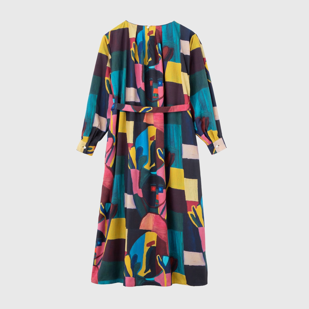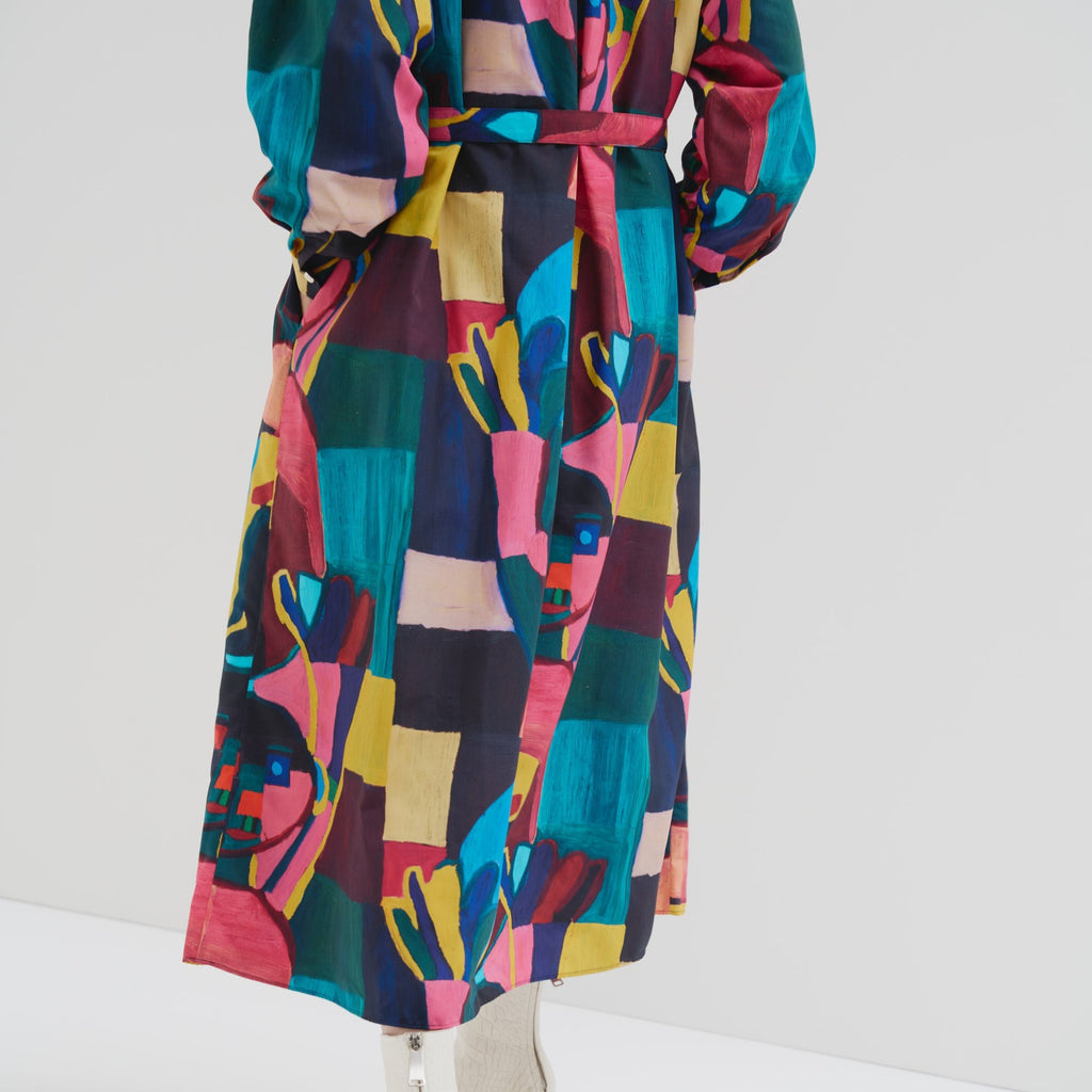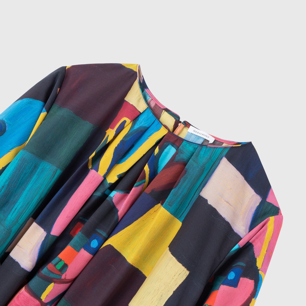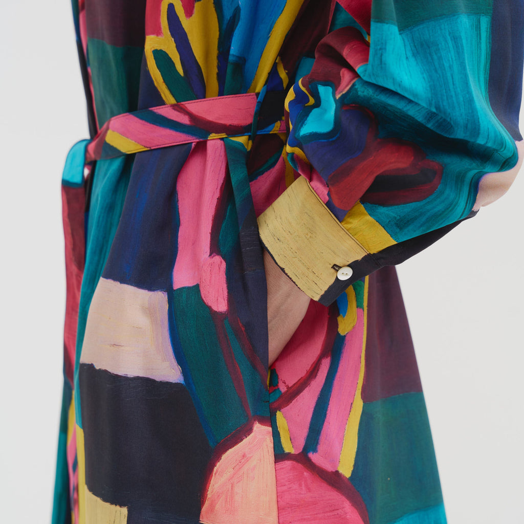 異彩が放つ魅力を感じられながらも、合わせるアイテムを選ばない絶妙なアートをセレクトしました。デイリーシーンをさりげなく華やかに彩るワンピースです。環境に優しいリサイクルポリエステル繊維のスパンブロード生地を使用し、先シーズンより少し光沢を抑えた生地感に仕上げました。パーティなどのおでかけにも、日常のおしゃれ着にも馴染みます。リラックス感がありながら上品な印象が魅力です。