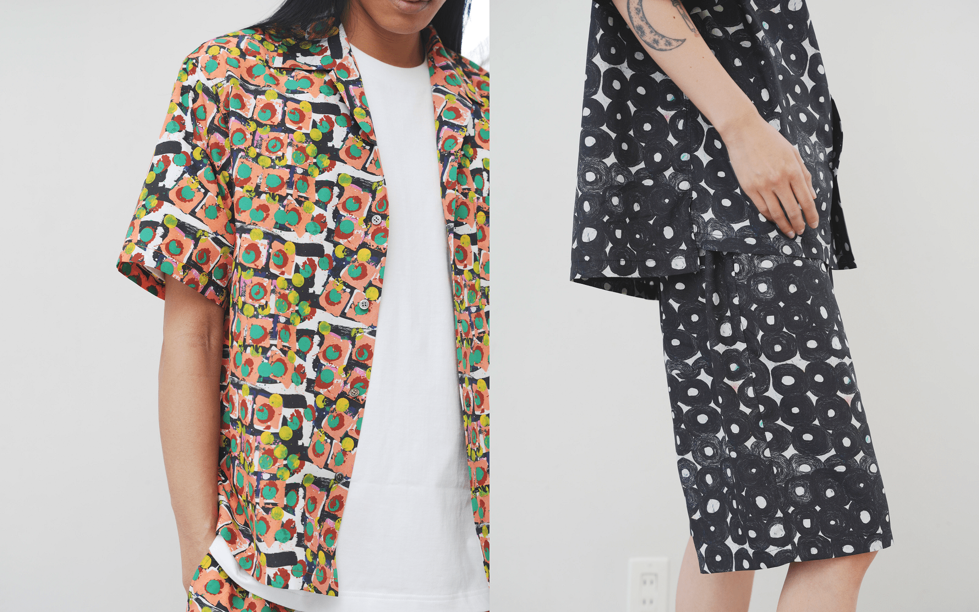 Taking a nap or going for a cool evening stroll. The new "open collar shirt" and "relaxed shorts" were created as one-mile wear for spending summer holidays with art. They are easy to wear, so they would make a great Father's Day gift. >Open collar shirt "(Untitled) (Circle)"
