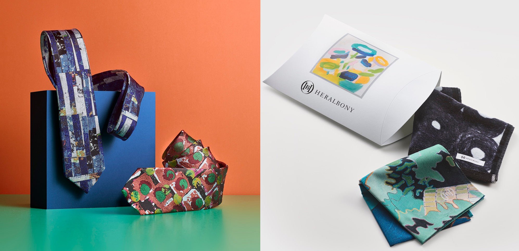 Silk ties made by Ginza Taya, a long-established textile store, are a classic gift that anyone would be happy to receive. They are also the first product created by HERALBONY.