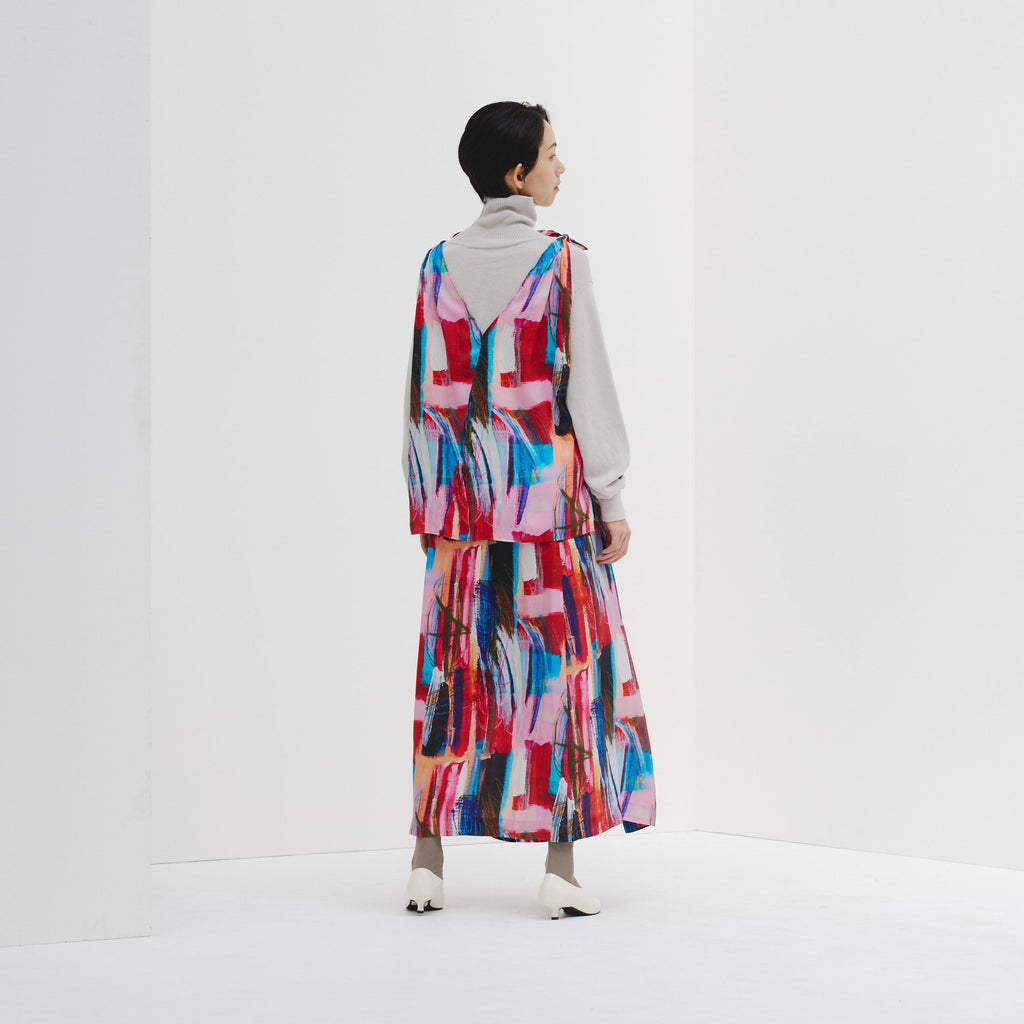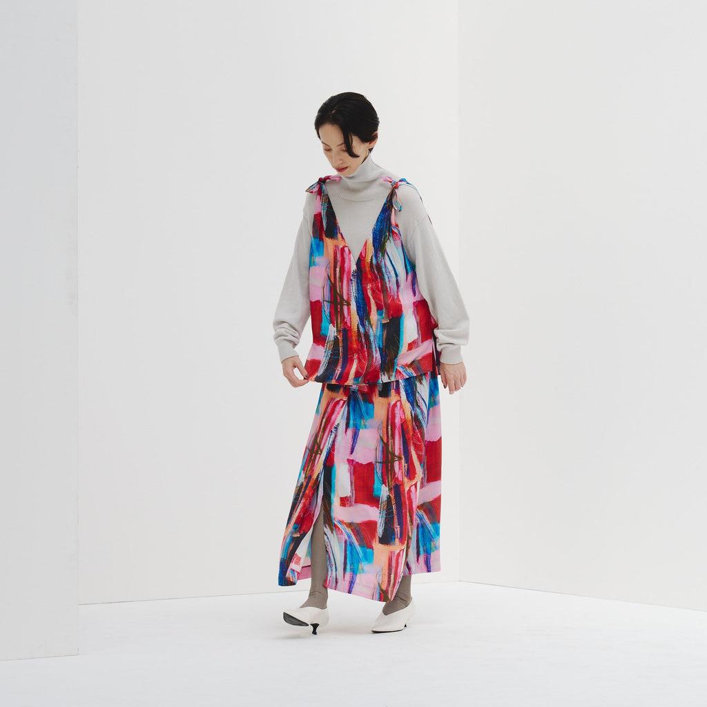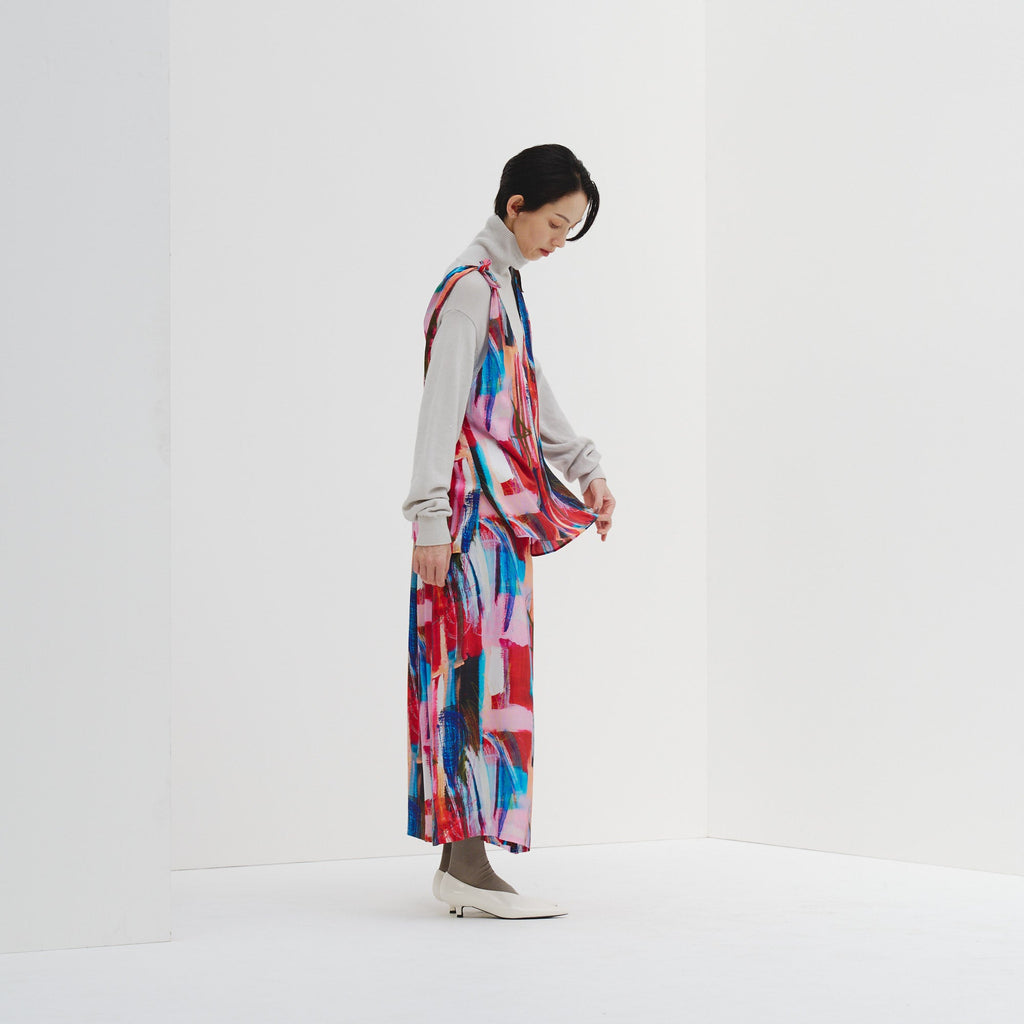 Vous pouvez le porter en robe avec la « jupe fendue » arborant le même motif, ou en ensemble tout-en-un avec le « pantalon droit » pour un look magnifique parfait pour sortir.