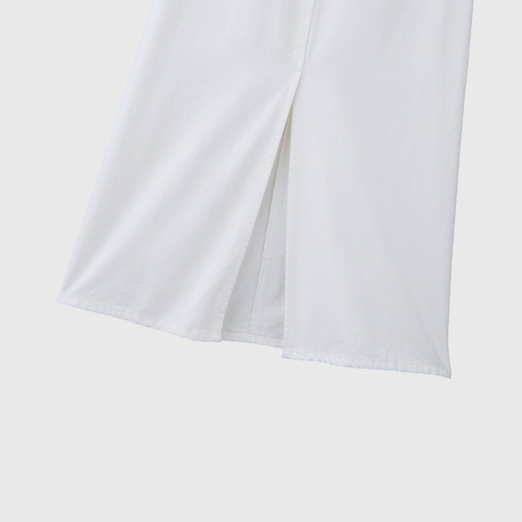 さりげなく異彩をまとう人気のデニムがスカートに。ヒップポケットにプリントしたmarinaの文字アートが不思議な魅力を放つ、はじめてアートをまとう方にもおすすめのスカートです。裾に向けてやや広がるナローシルエットですっきりと着こなせます。モデル身長:172㎝