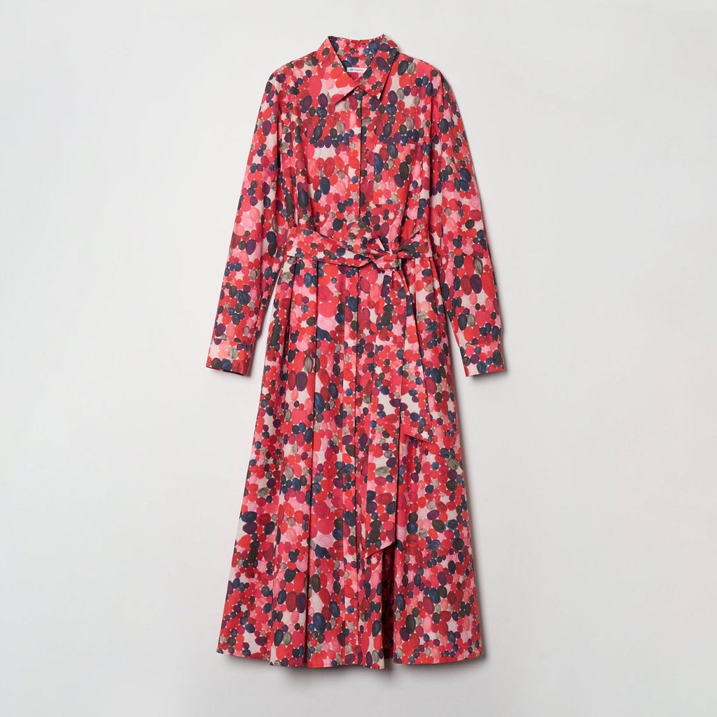凛とした襟元やカフスがジャケットスタイルにも馴染む、オンオフ問わず着こなせるワンピースです。お出かけ時は袖をまくりあげてあえてラフに着こなしたり、付属のベルトの結び方をアレンジしたりと抜け感のある着こなしもおすすめです。