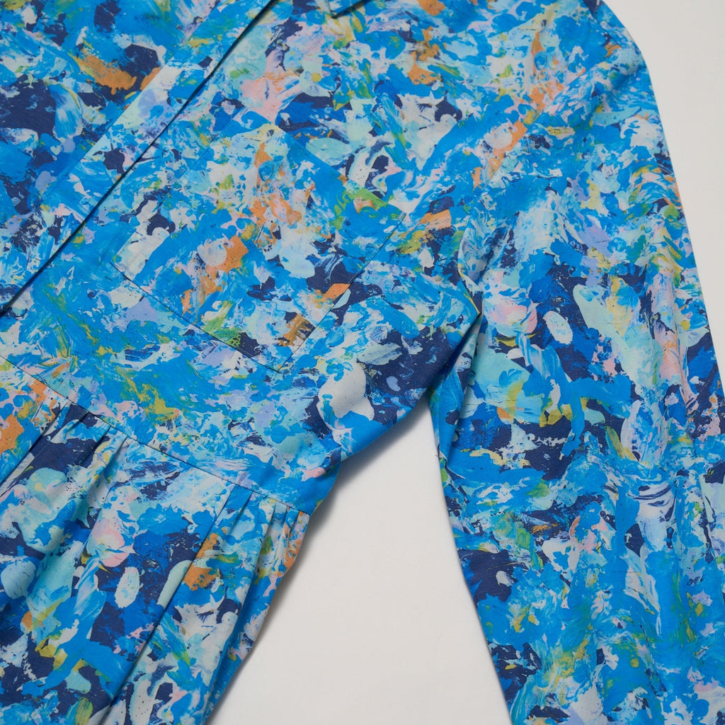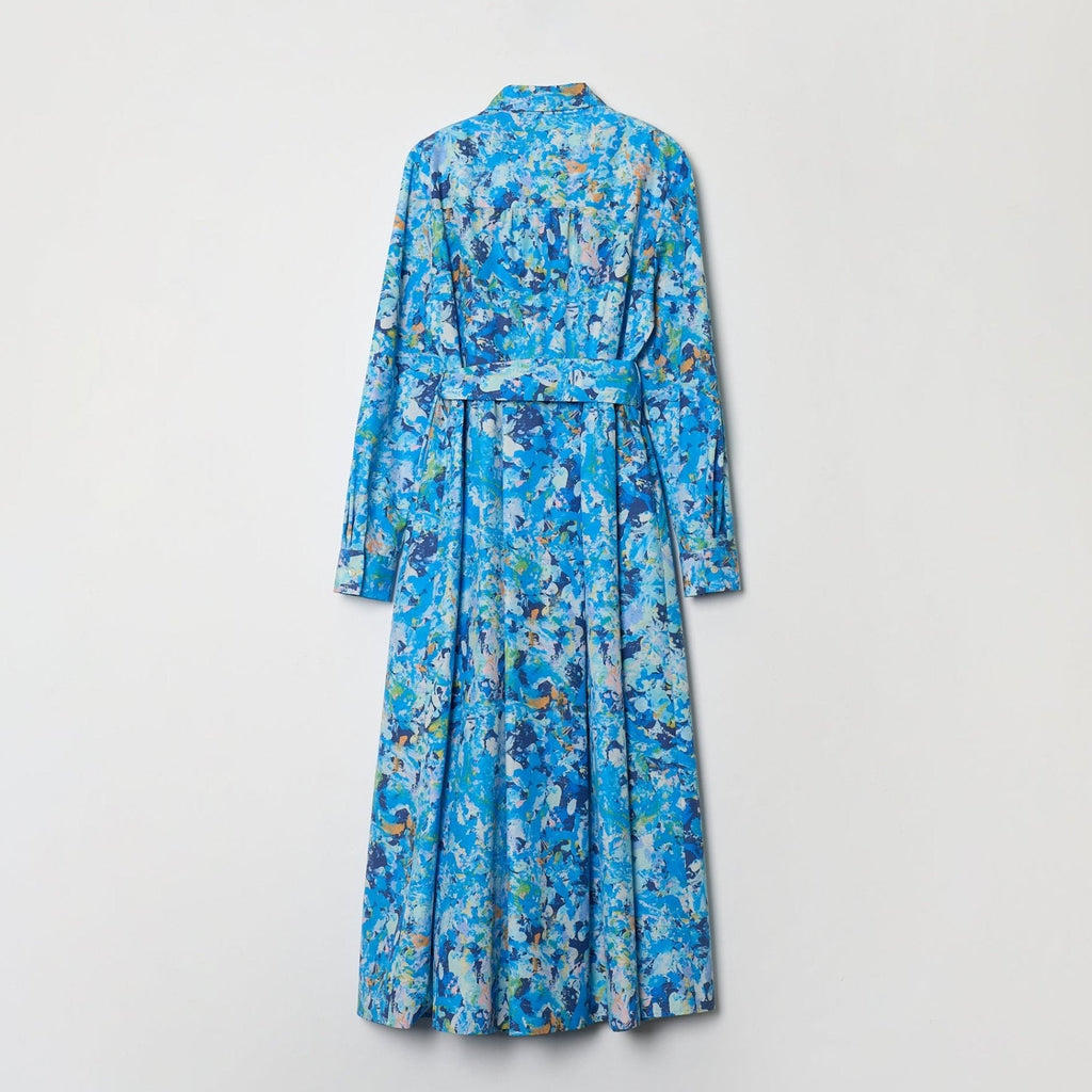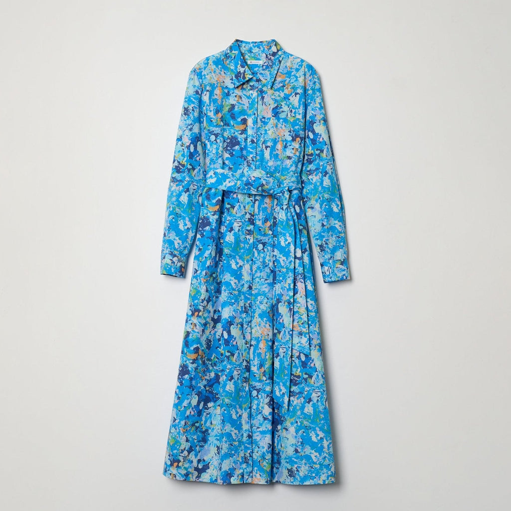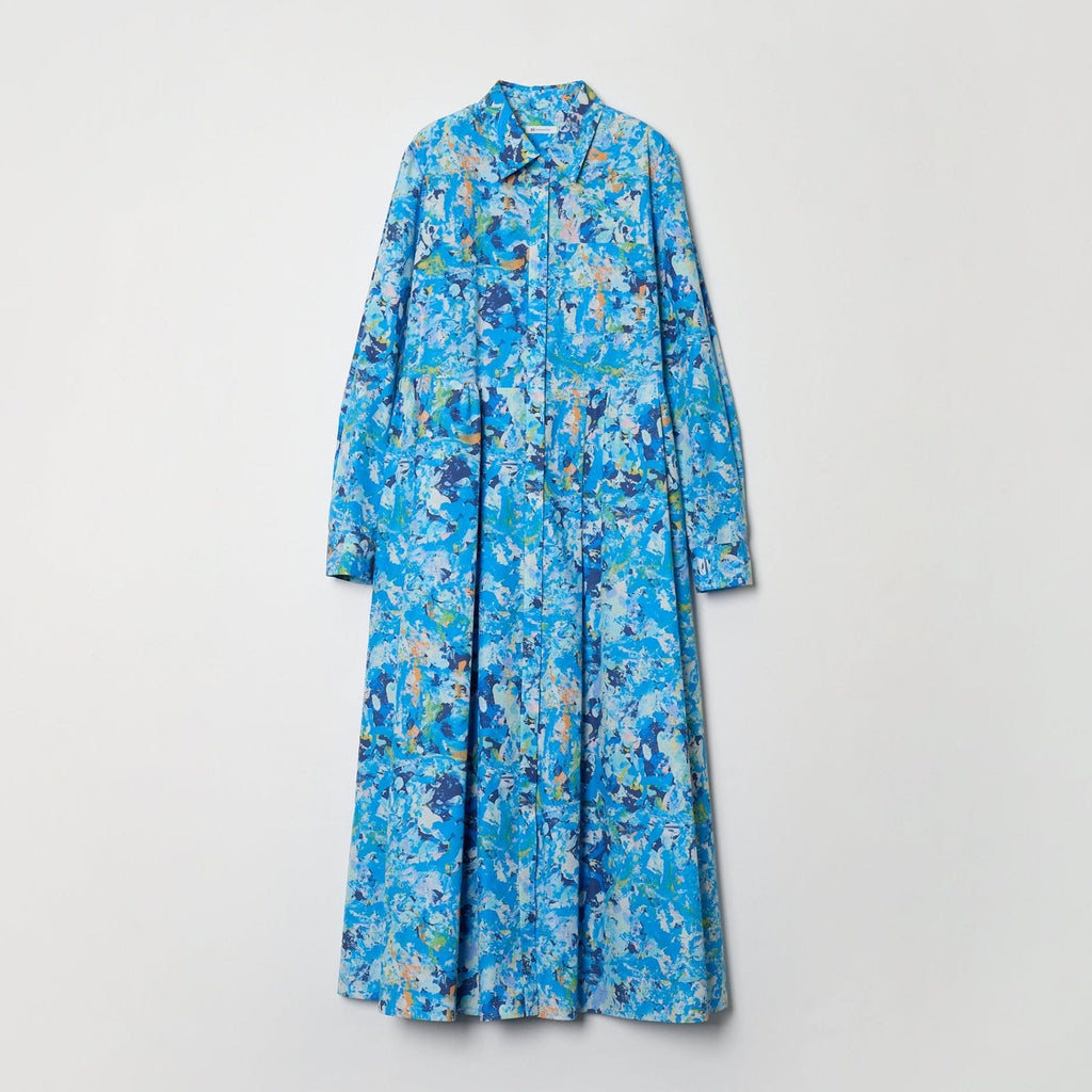 主役級の存在感を放つフレアースカートワンピース。上半身のシャツディテールが持つ構築的な美しさと、下半身のたっぷりと生地が広がるシルエットが絶妙なバランスを生み出します。