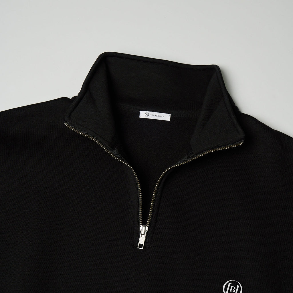 ネックの開け方で表情が変化するハーフジップタイプのスウェット。フロントはシンプルなHERALBONYのロゴをワンポイントとして配し、バックに鮮やかな片寄 大介のアートをプリントしました。