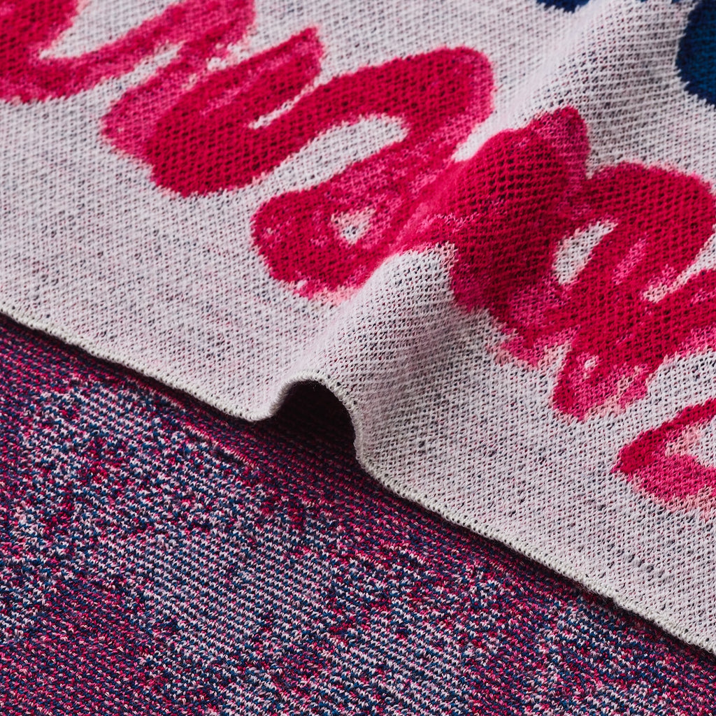 アートの唯一無二の色彩や筆使いを再現すべく、ジャガード織りの技法で編み上げました。複数の色糸を使用し、生地そのものでアートを再現することで、プリントでは再現しきれない、作品独自の色彩と質感を再現しています。