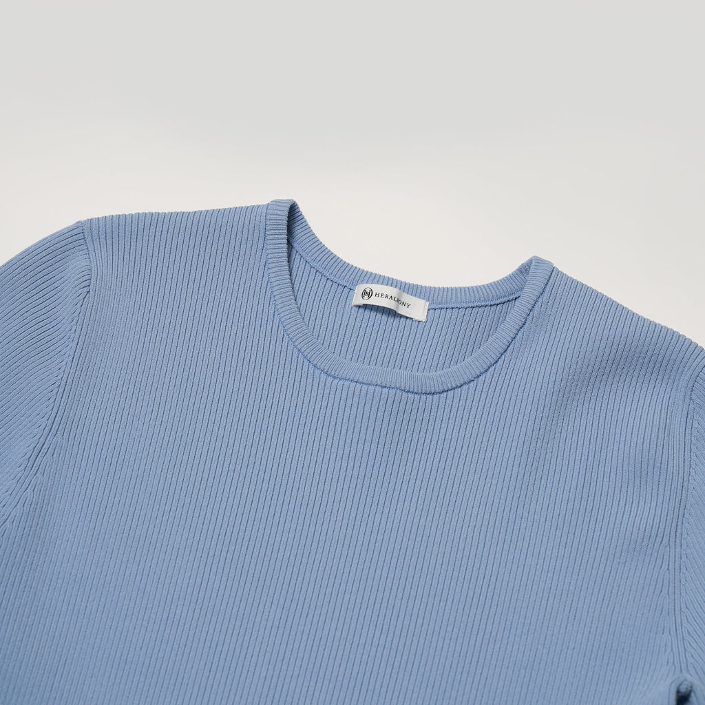 リブニットはアートの色彩に合わせたカラーリングを厳選。シンプルでありながら、スカート部分のアートが放つ異彩を引き立てます。