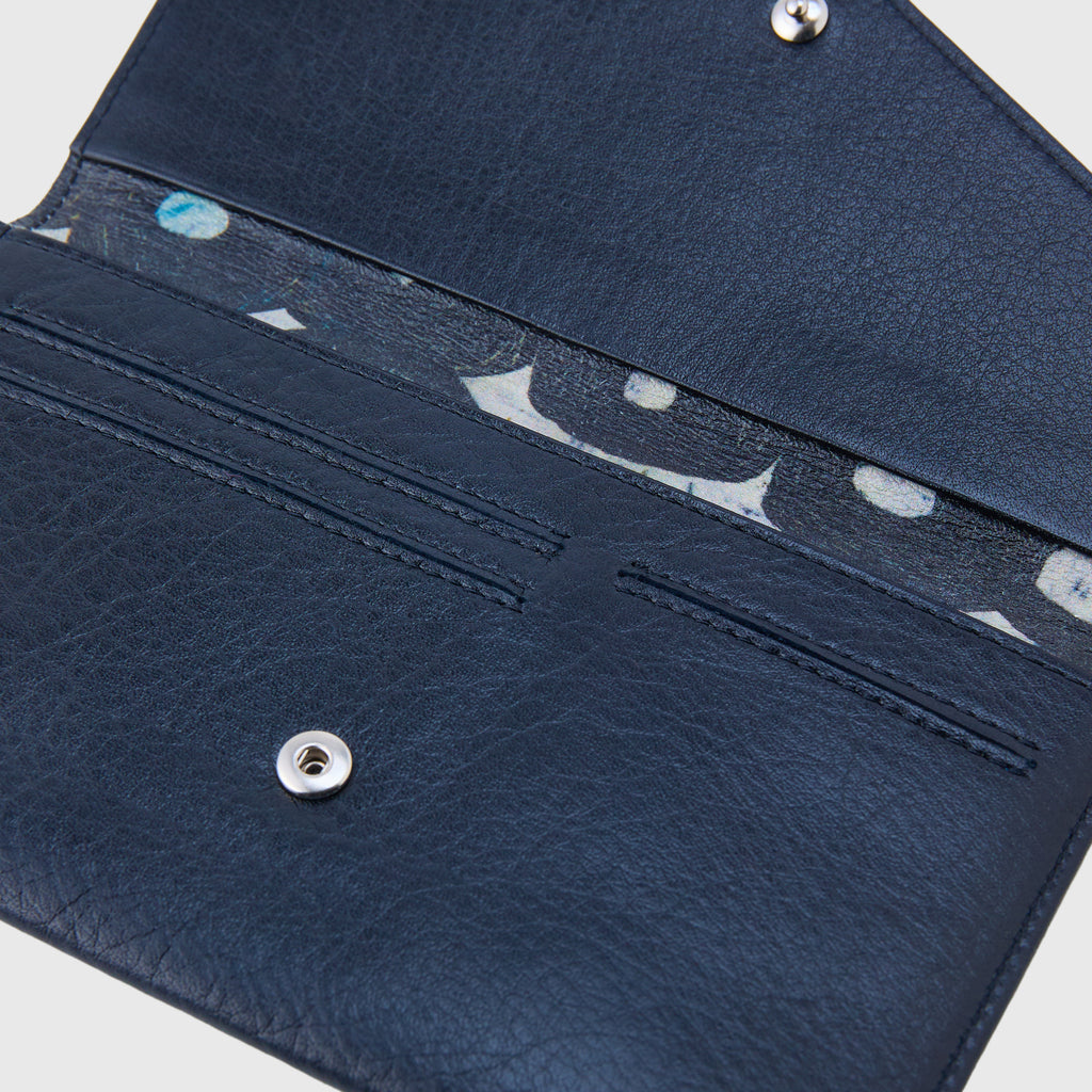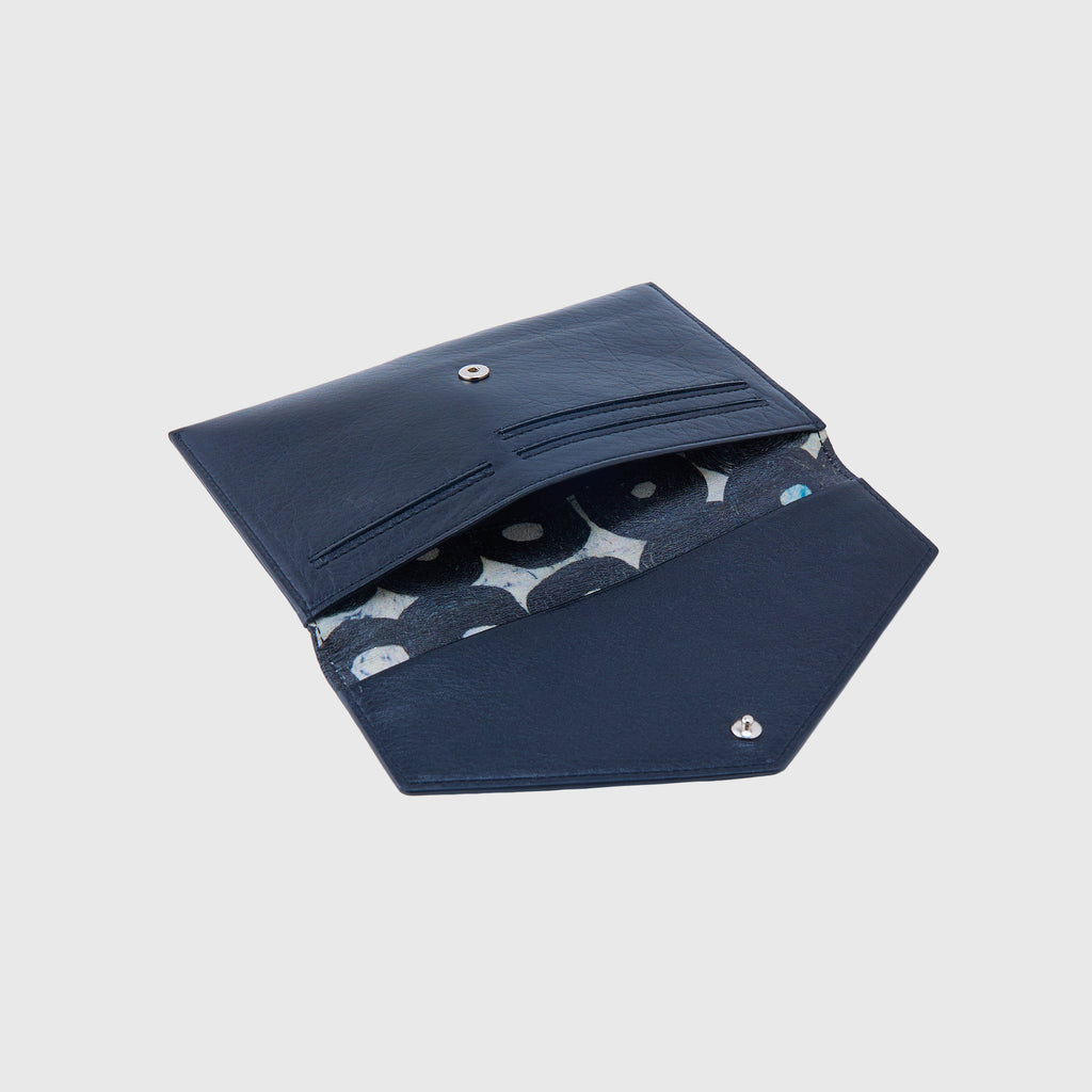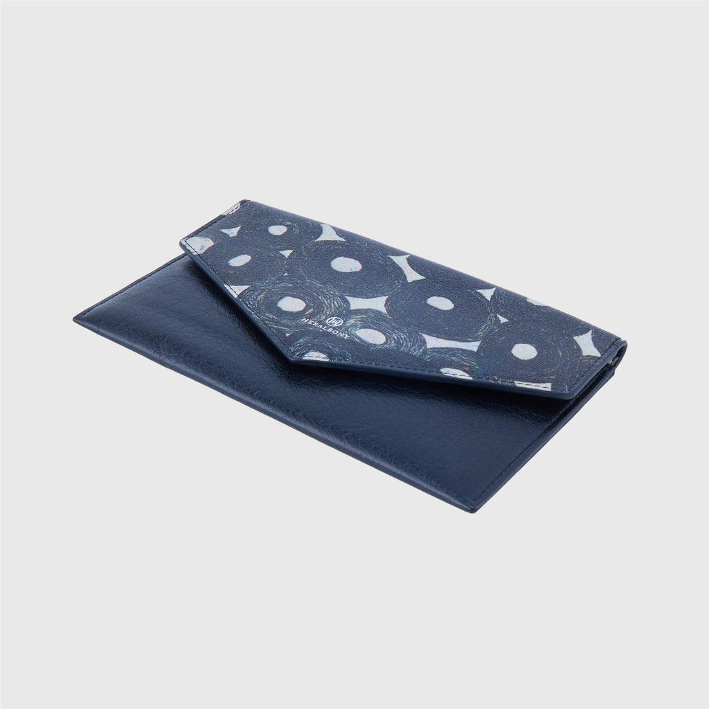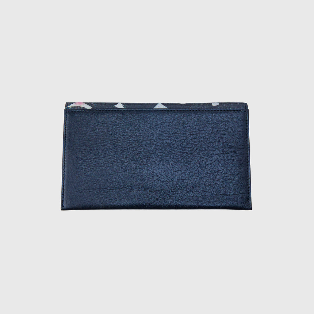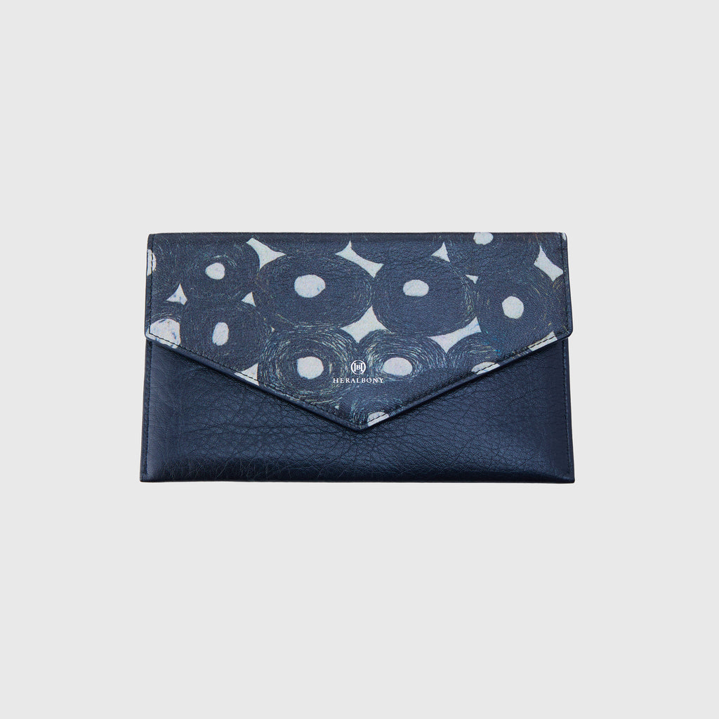 レター型のシルエットは洗練された印象を演出しながら、開閉のしやすさも魅力。フラップと内側の一部に取り入れたアートが、旅の時間を豊かに彩ります。
