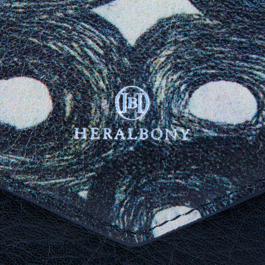 フラップ部分にあしらわれたアートが、旅の時間にささやかな楽しさと彩りを添えてくれるアイテムです。やわらかな表情の牛革のほんのりとしたシボ感が手に馴染み、使うほどに風合いが深まります。