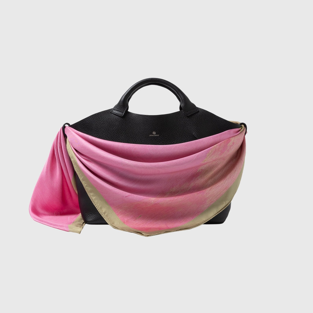 We have reviewed the manufacturing process and have created a scarf that is beautiful on both the front and back. In order to recreate the original energy of the work without losing it, we have stuck to using 100% silk material, and it has a firm, smooth texture that is also comfortable to wear around the neck.