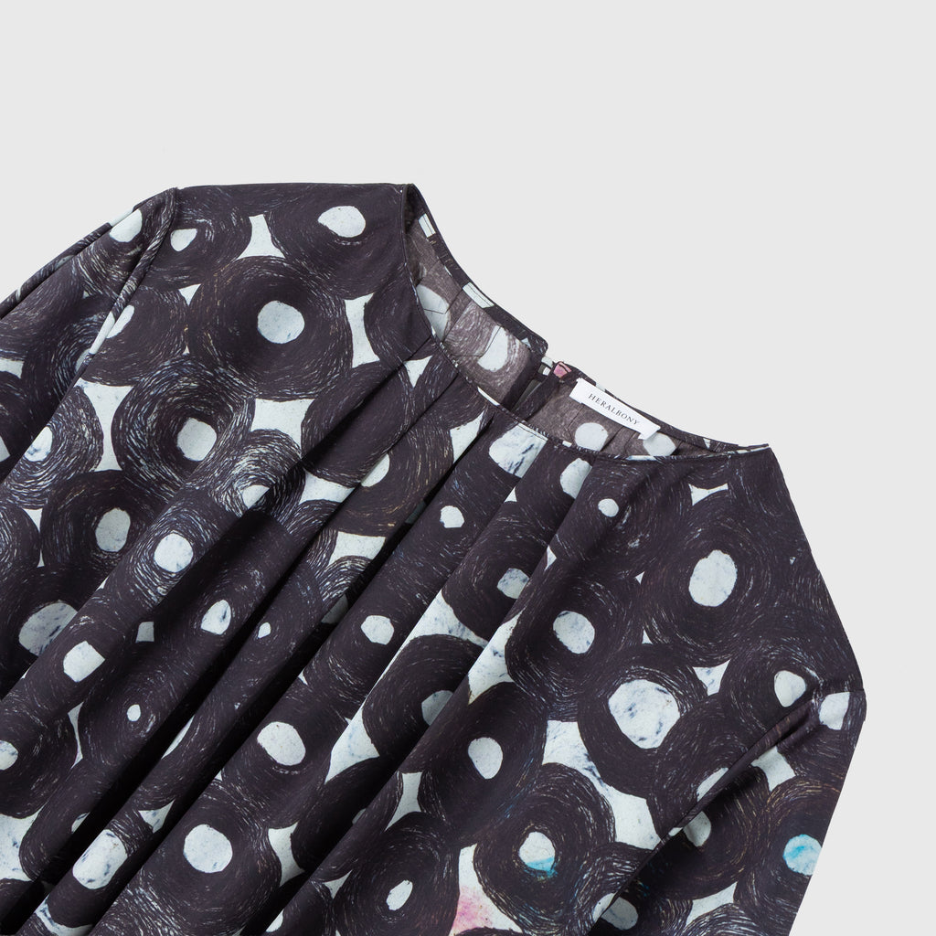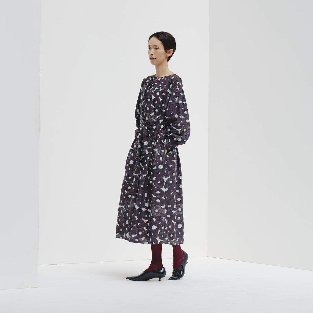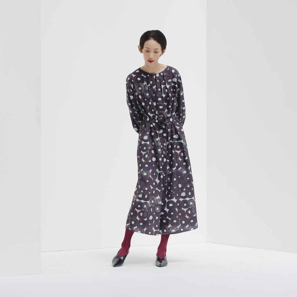 異彩が放つ魅力を感じられながらも、合わせるアイテムを選ばない絶妙なアートをセレクトしました。デイリーシーンをさりげなく華やかに彩るワンピースです。環境に優しいリサイクルポリエステル繊維のスパンブロード生地を使用し、先シーズンより少し光沢を抑えた生地感に仕上げました。パーティなどのおでかけにも、日常のおしゃれ着にも馴染みます。リラックス感がありながら上品な印象が魅力です。