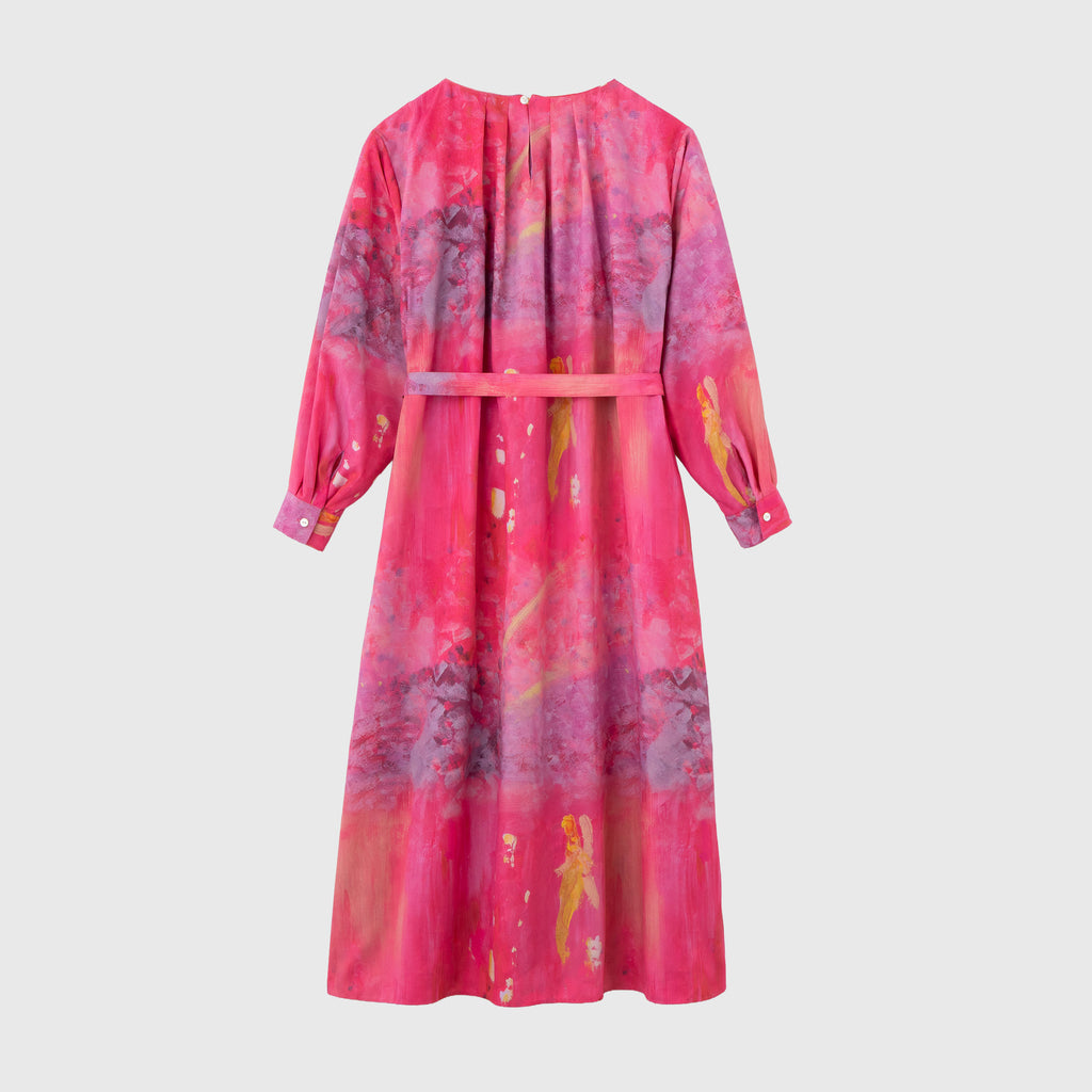 異彩が放つ魅力を感じられながらも、合わせるアイテムを選ばない絶妙なアートをセレクトしました。デイリーシーンをさりげなく華やかに彩るワンピースです。環境に優しいリサイクルポリエステル繊維のスパンブロード生地を使用し、先シーズンより少し光沢を抑えた生地感に仕上げました。パーティなどのおでかけにも、日常のおしゃれ着にも馴染みます。リラックス感がありながら上品な印象が魅力です。