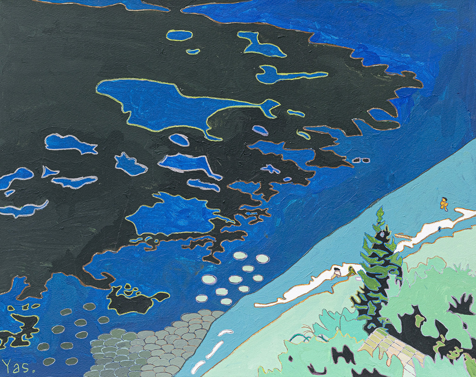 Kobayashi Yasuhiro is an autistic artist whose color vision deficiency means he perceives colors such as "red and green" and "blue and purple" equally. His works, painted with unique colors such as green elephants and purple skies, captivate many people. The three works featured this time are based on blue, the symbolic color of Autism Awareness Day. No two "blues" are the same, with scenes of mountains with clear air, the majestic Adriatic Sea, and relaxing in the waves. Please feel the message of HERALBONY, which aims to transcend the boundaries of autism, Down syndrome, and disabilities and create a world where each person can live as they wish, as an irreplaceable individual.