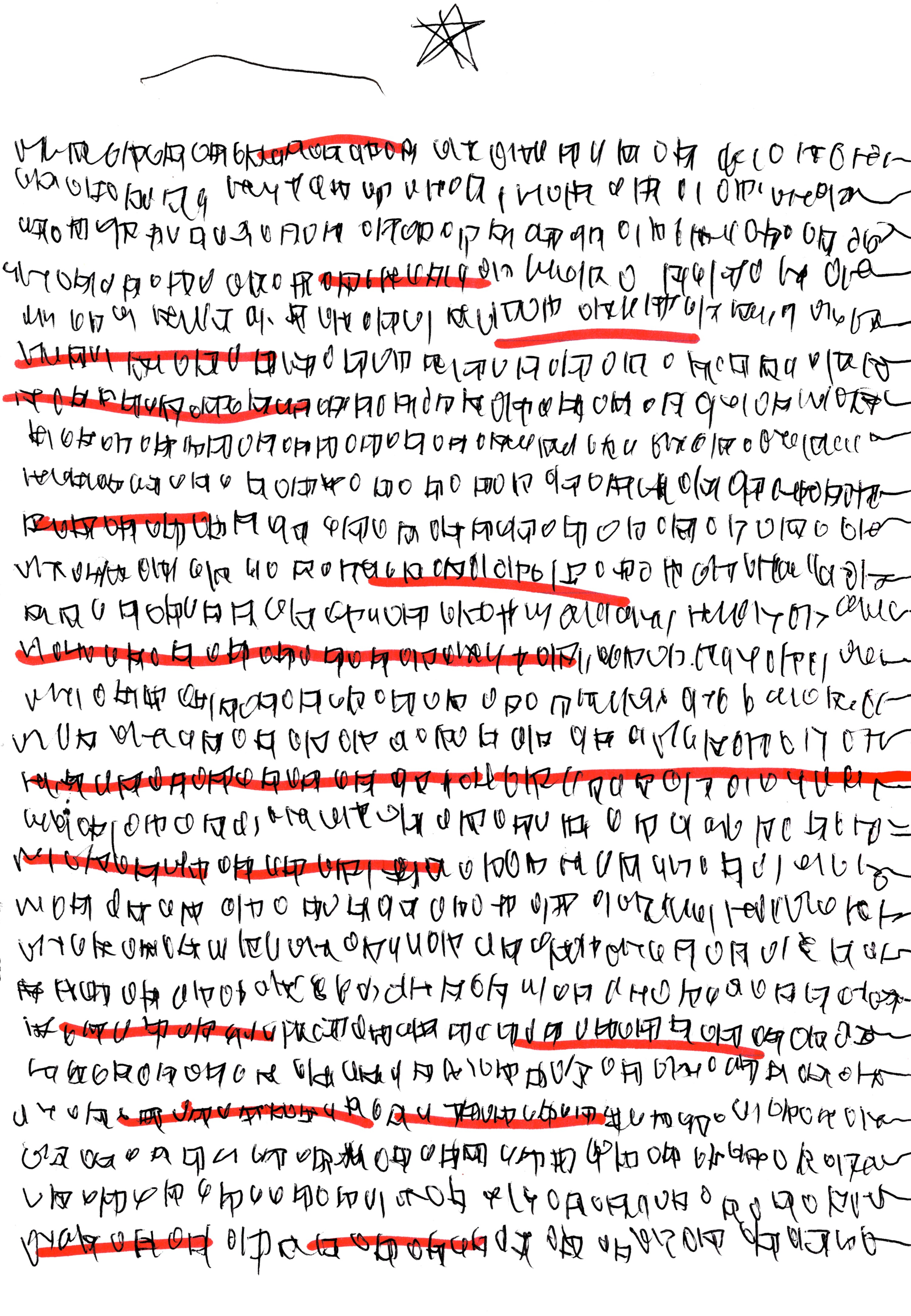 The letters on the front vary in size to represent Marina's field of vision as she draws, sometimes getting close to her art supplies.