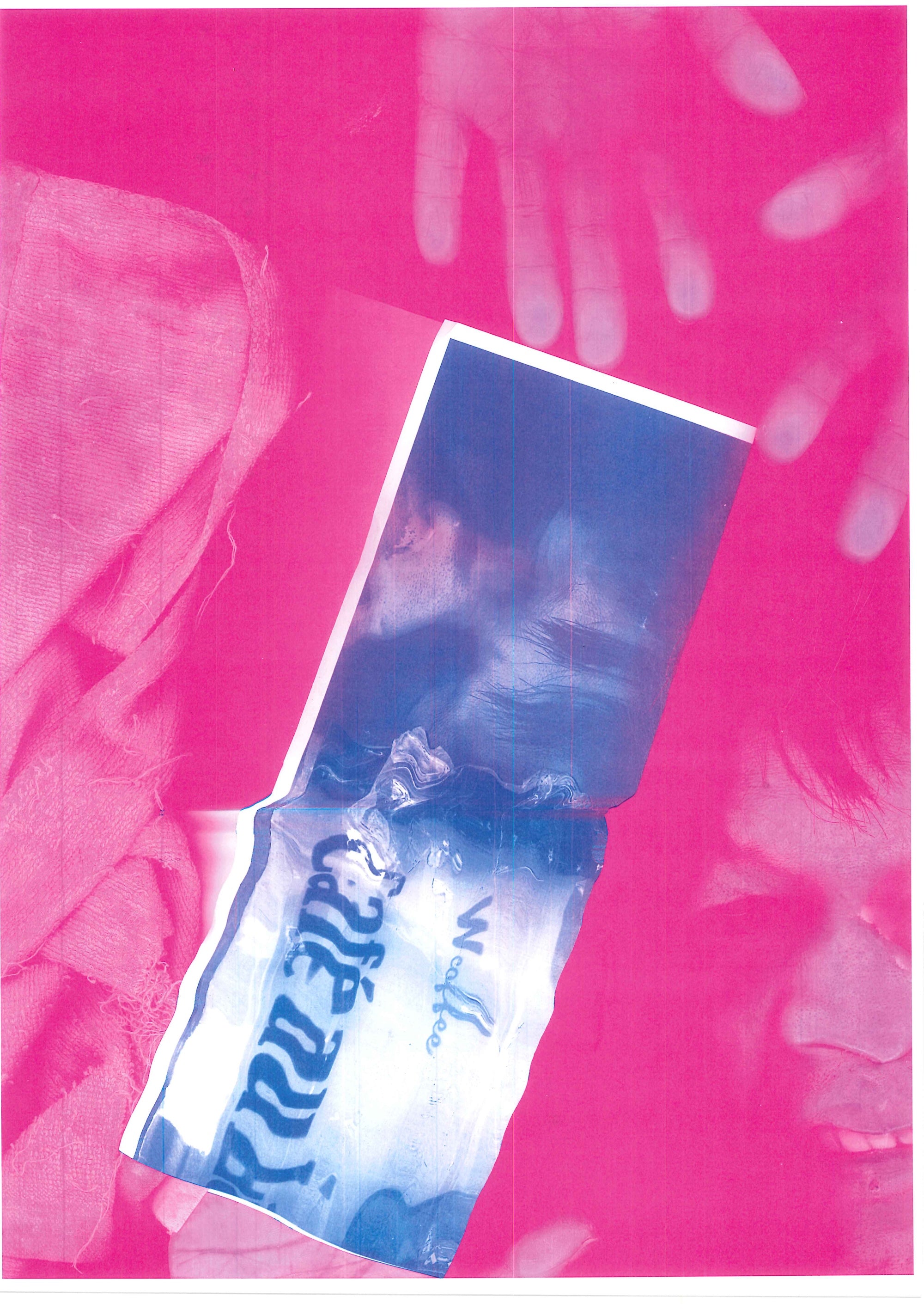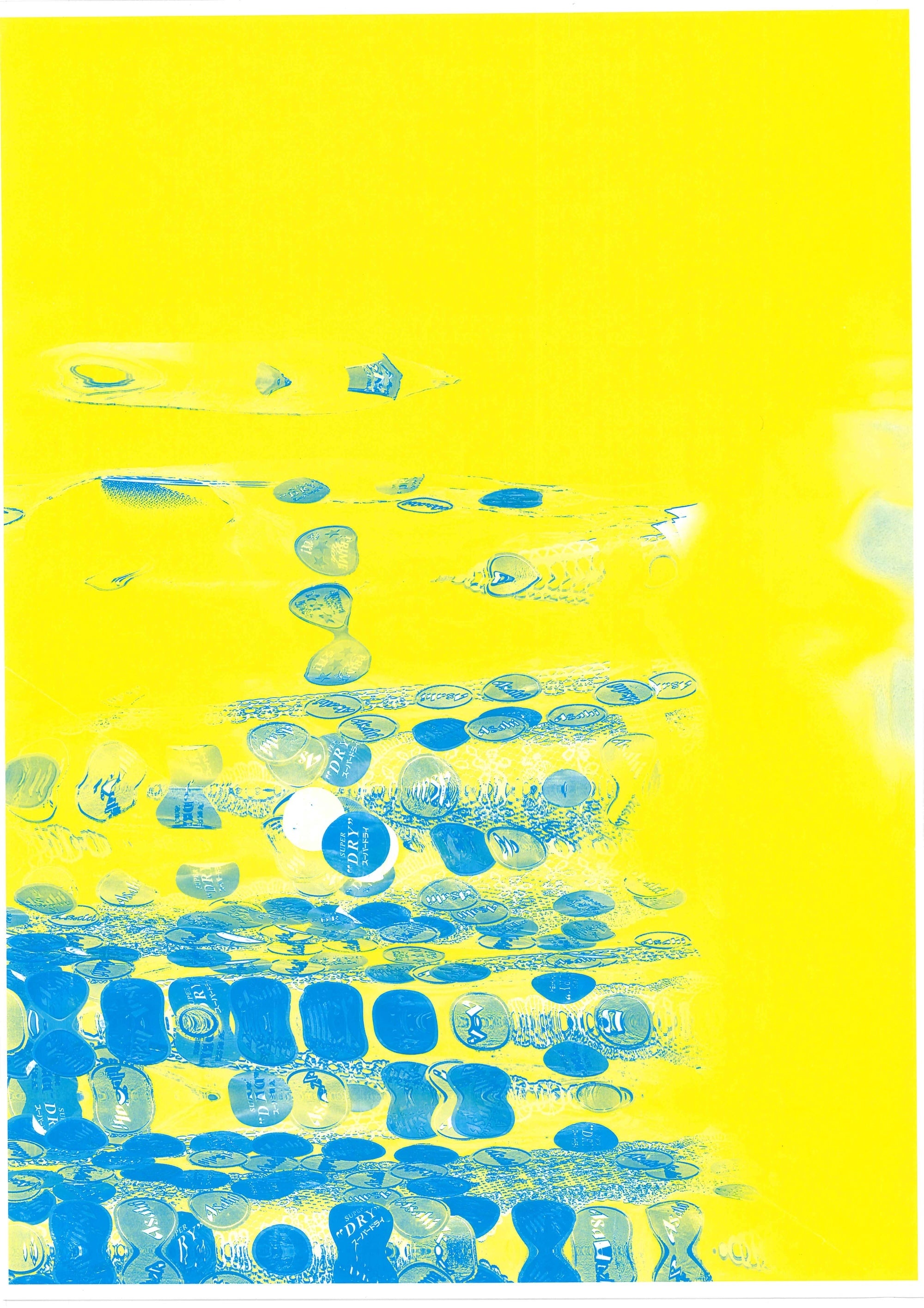 (B) is a bold reproduction of the artist's unique production style, in which the subject is photographed while swaying his body, in a print with a sense of movement. The deliberate positioning of the work, which makes it unclear where it is upside down, is reminiscent of a copy machine.