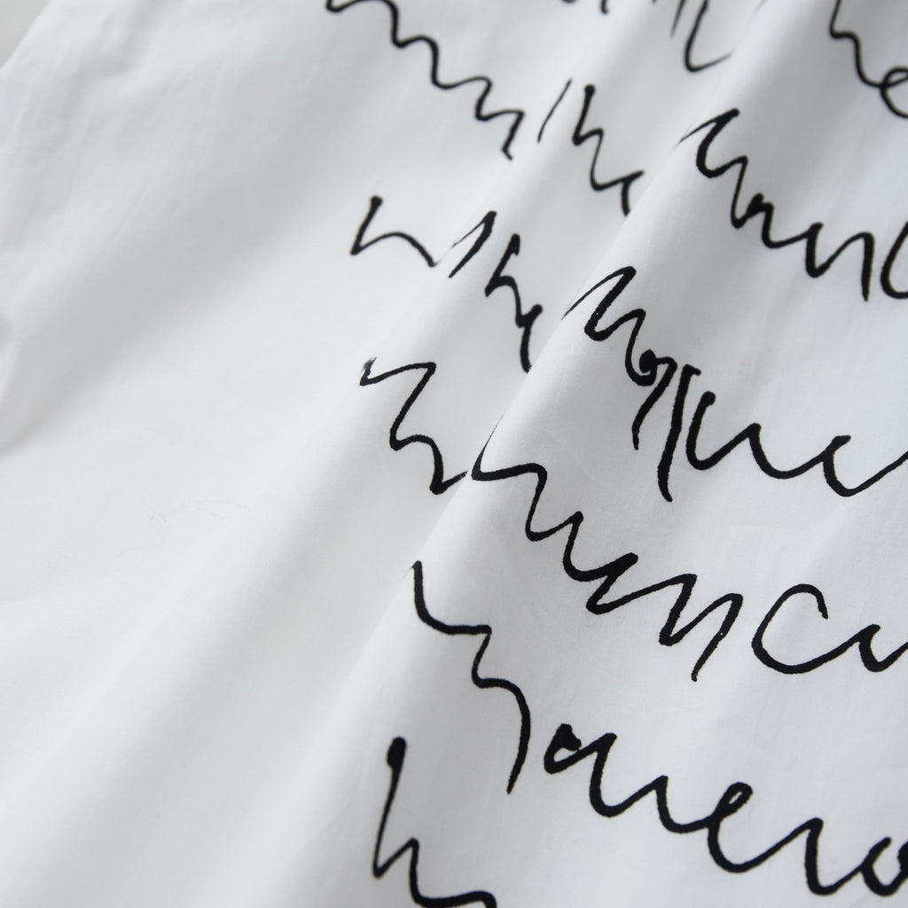 marinaが空間を埋め尽くすように書く「marina moji」。モノクロのペンで綴られたアートから、絵の具で流れるように描かれた作品まで、それぞれの魅力が引き立つサイズ感でプリントしました。