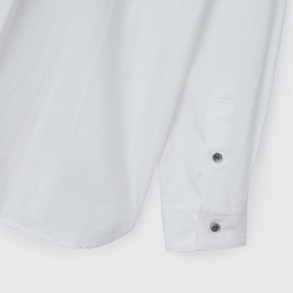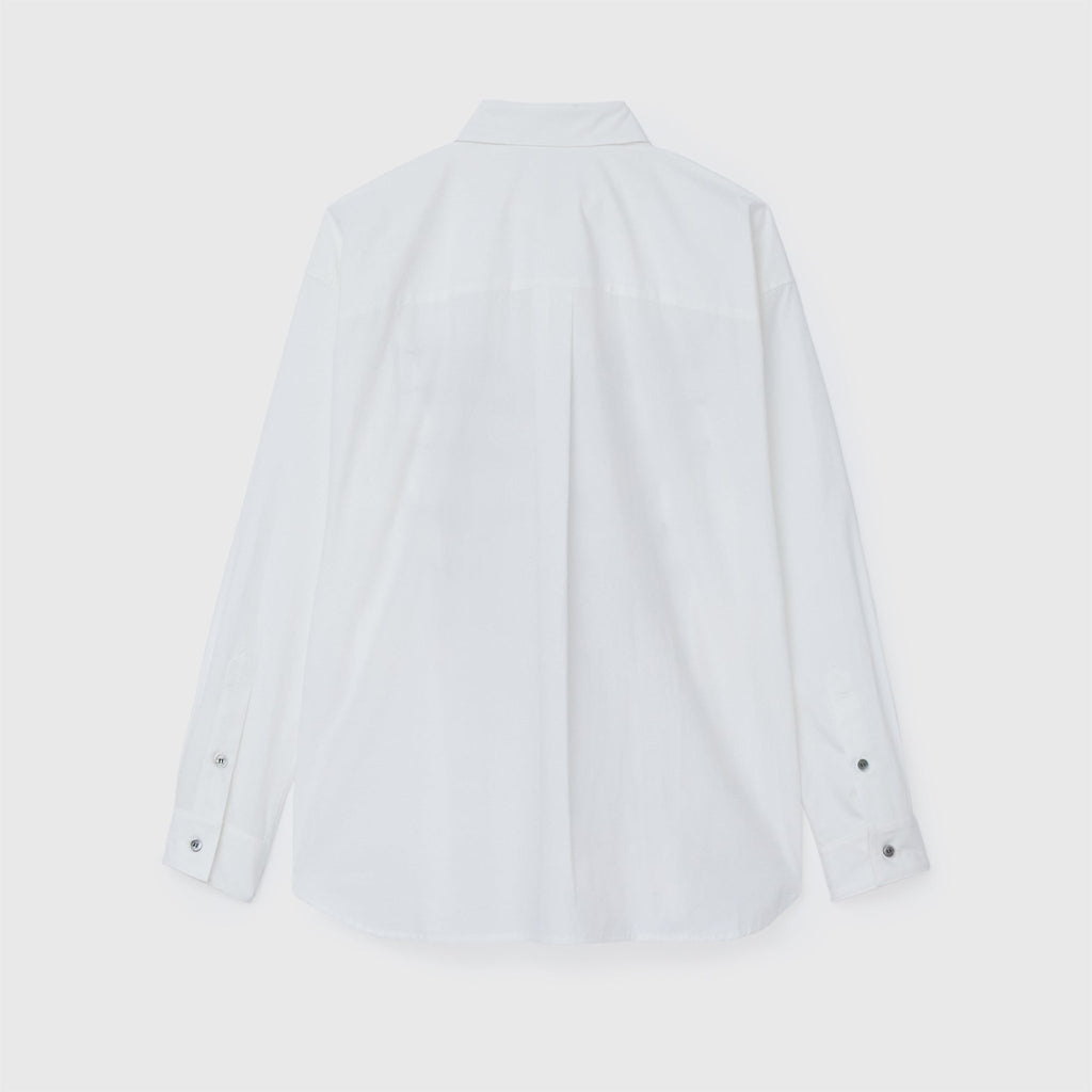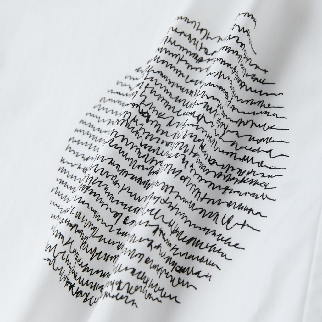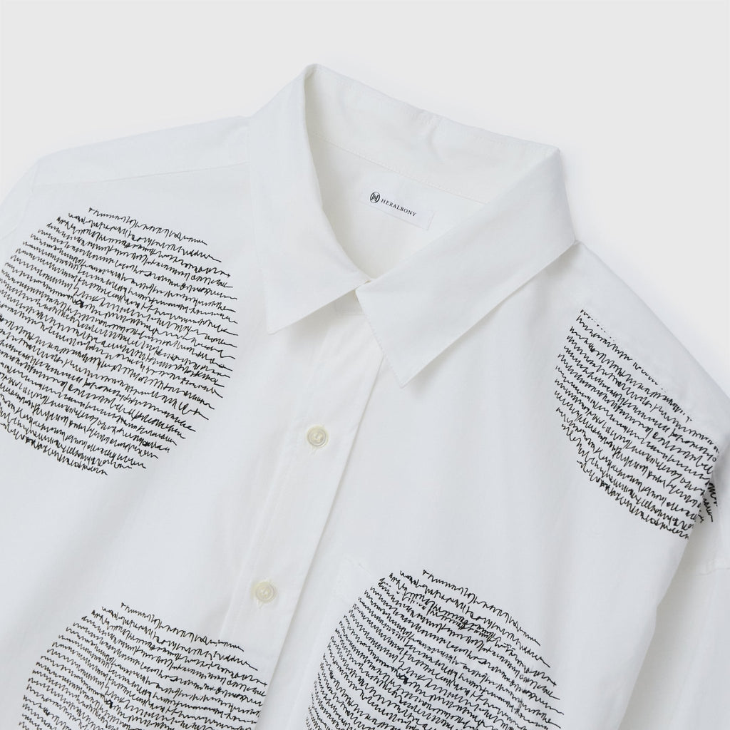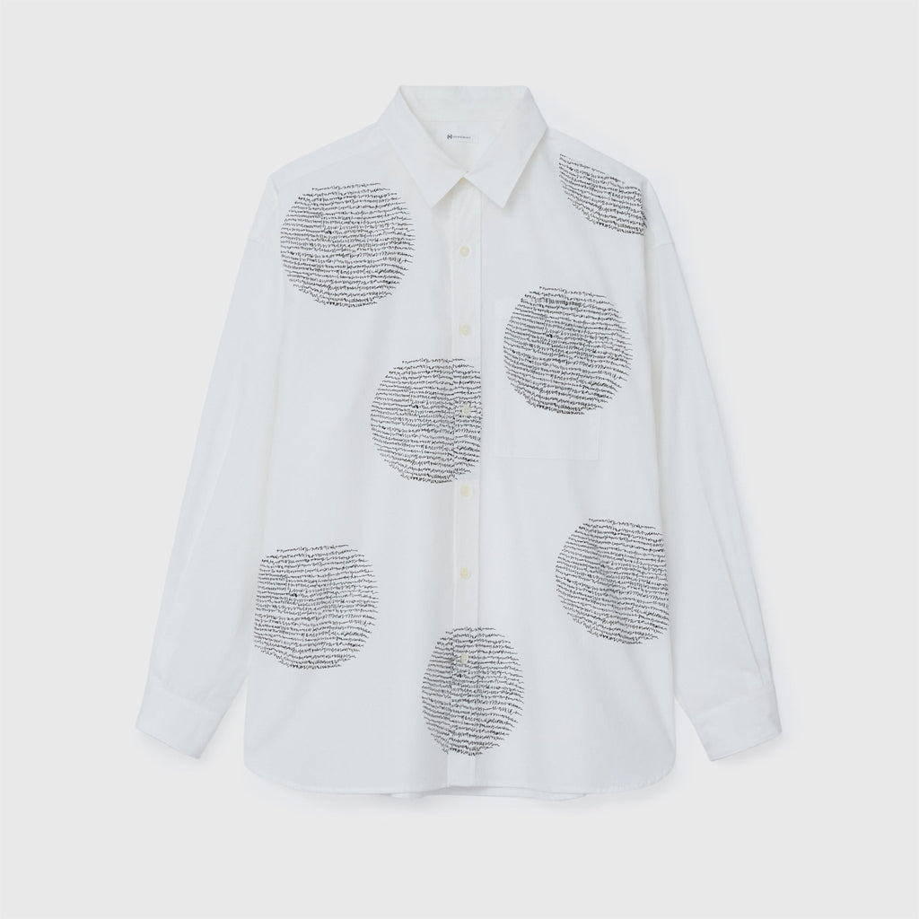 フロントにアートを配置したレギュラーカラーの長袖シャツ。身体のラインを拾わないユニセックスなシルエットで、インナーにニットを着たり、フロントを開けて羽織として着たりなど、幅広いスタイリングが可能です。