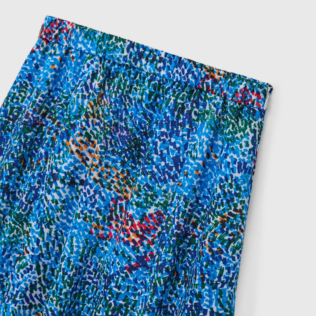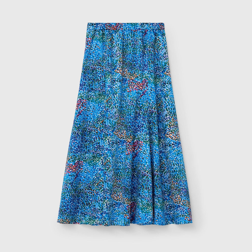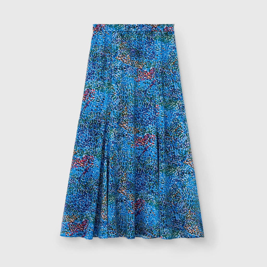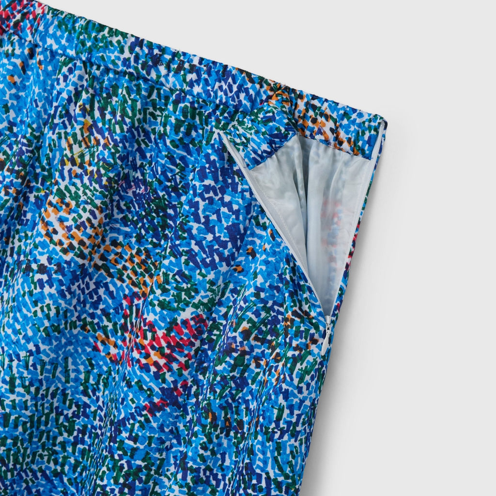 落ち着いたカラーリングのアートは、ジャケットやジレとも相性抜群。ビジネスシーンにも調和する、大人のスタイリングに合わせやすいスカートです。