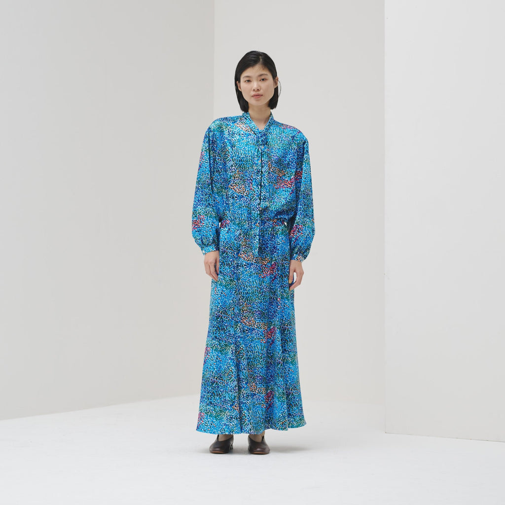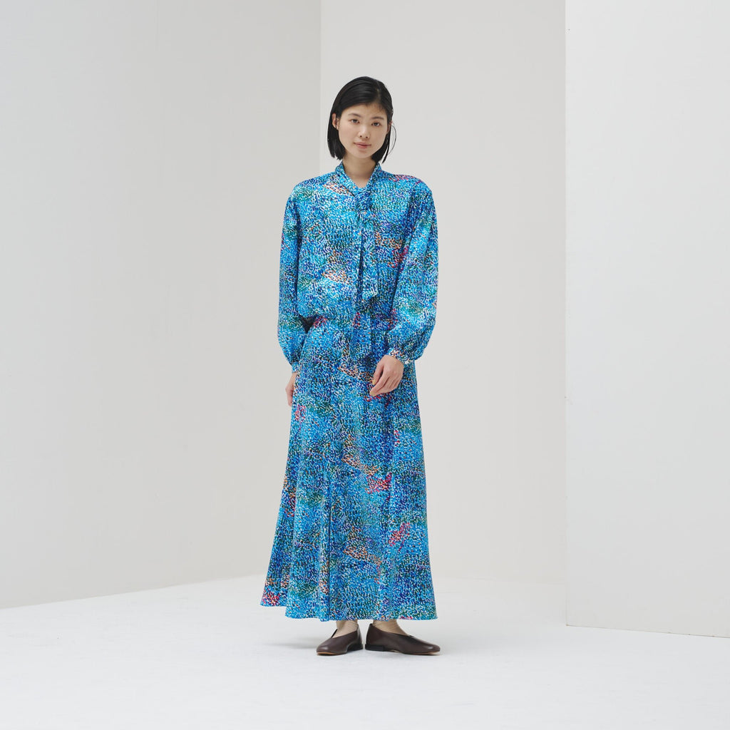 同じアートを起用したボウタイブラウス・シャツブラウスとセットアップが可能です。よりドレッシーな印象となり、登壇や式典などのフォーマルな場でも華やかな印象に。