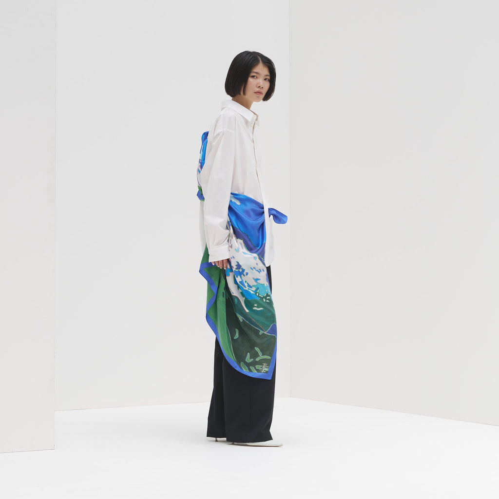 We've used 100% silk to faithfully reproduce the unique brushwork of the artist. The silk has a firm, smooth texture that you'll want to touch forever, adding a special touch to your everyday outfit.