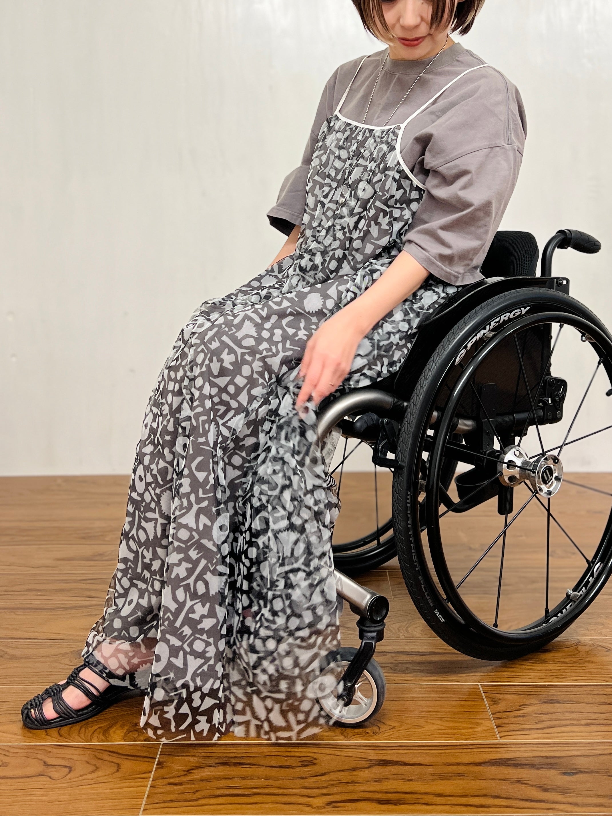 You can enjoy layering in any season depending on the items you layer it with, whether you want to wear it casually with a sporty T-shirt and pants, or finish it off with a feminine top for a girly look. The sides have less gathers for a clean finish, so we recommend layering it with a jacket or a chunky knit in the fall and winter.
