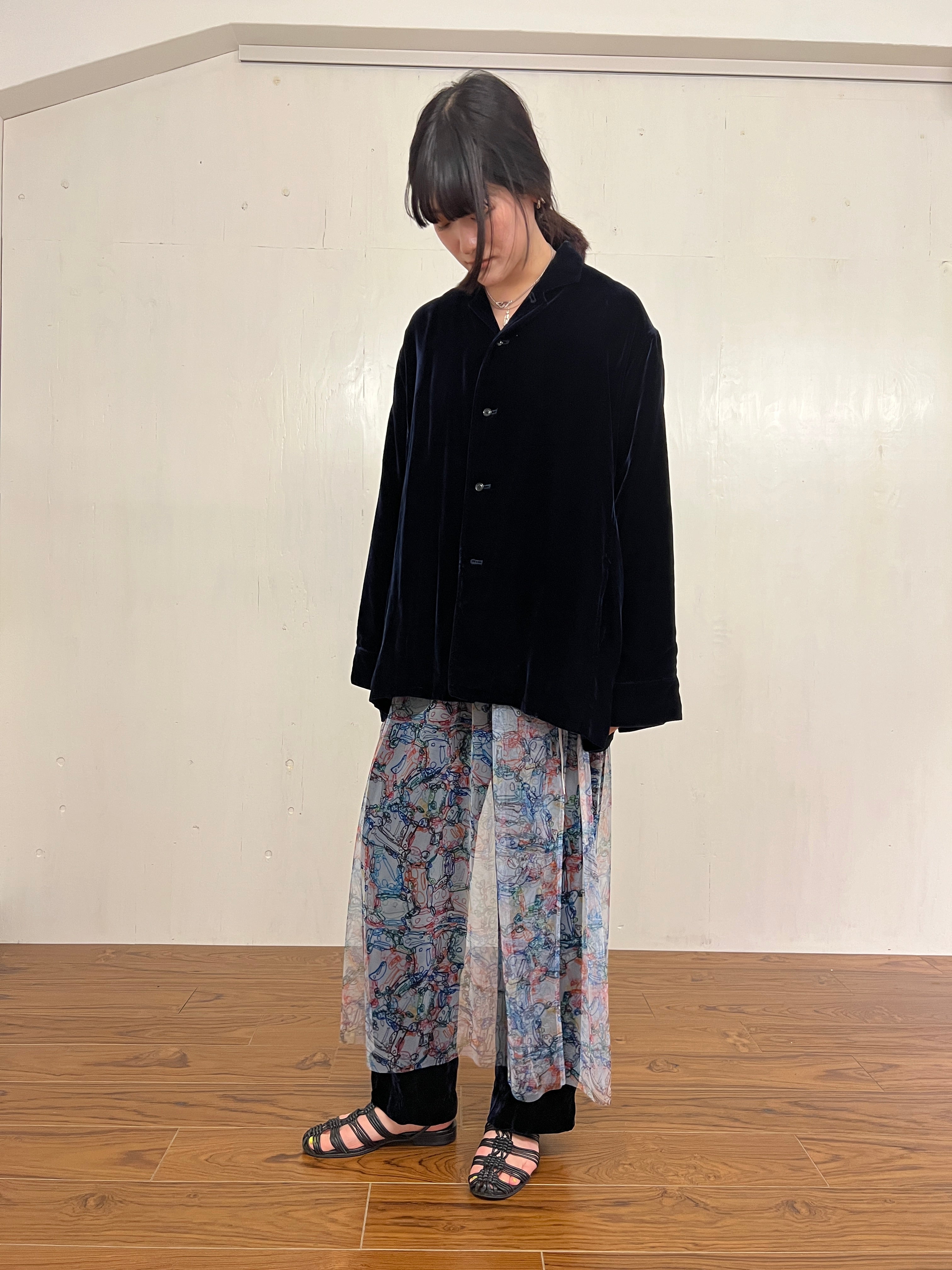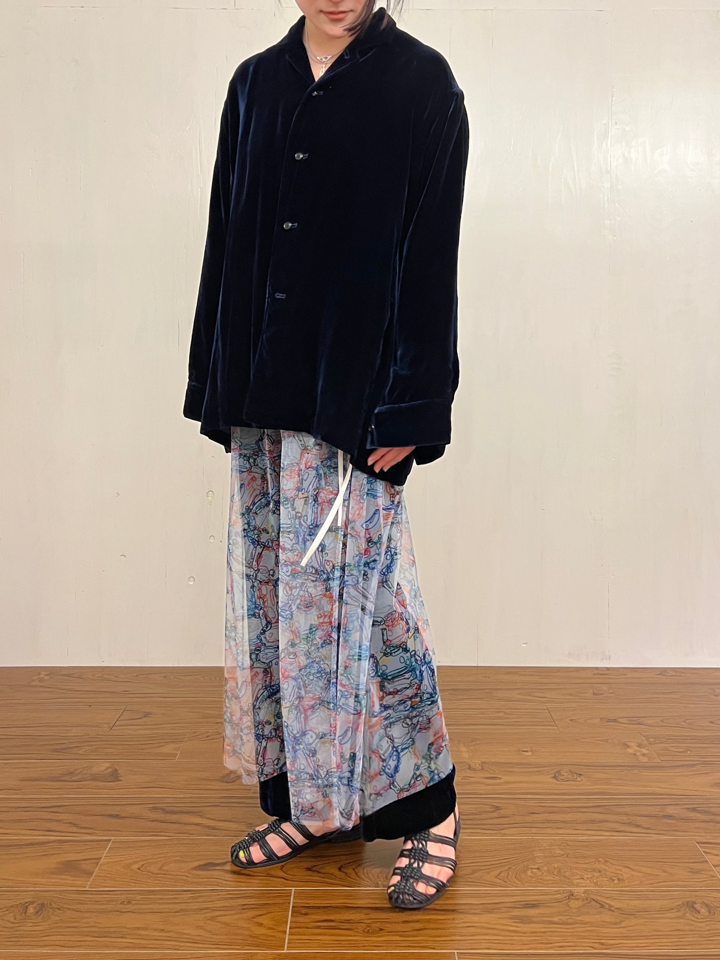 It can be worn with anything from summer T-shirts to winter knitwear, making it a seasonless piece. In summer, you can enjoy the cool texture of the tulle, and in autumn and winter, when it tends to get heavy, simply layer it to create a light impression.