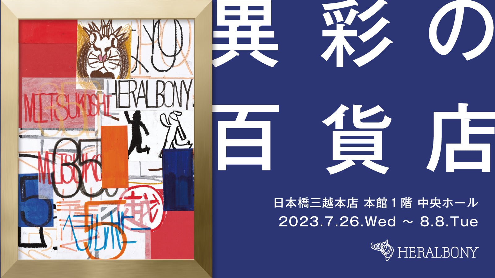 Pendant 14 jours, du 26 juillet (mercredi) au 8 août (mardi), un pop-up store « Isaino Hyakkaten » se tiendra dans le hall central au 1er étage du bâtiment principal du magasin principal Nihonbashi Mitsukoshi Masu. Pour commémorer le 350e anniversaire de Mitsukoshi cette année, l'artiste Nozomi Fujita a créé une œuvre d'art originale sur les thèmes du « 350e anniversaire de Mitsukoshi » et du « 5e anniversaire d'Heralbony » et l'a utilisée comme visuel principal.