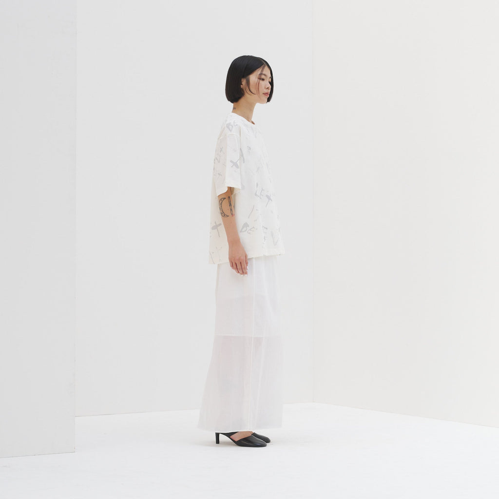 フロントとバックには異なるグラフィックをプリントし、作品ごとの多面的な魅力を表現しました。正面はもちろん、後ろ姿でもアートが映えるデザインです。