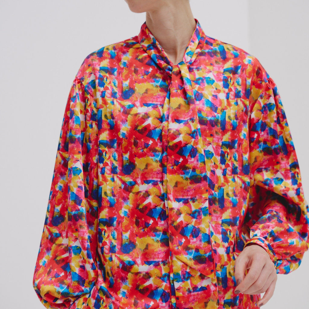 ■ Une pièce qui ne passe pas inaperçue <br> Sa silhouette légèrement ample est rehaussée d'une touche d'élégance grâce au nœud papillon et aux manches volumineuses. Le large nœud papillon, net et précis, peut se porter noué, lâche ou simplement laissé pendre, offrant ainsi une multitude de possibilités selon vos envies.