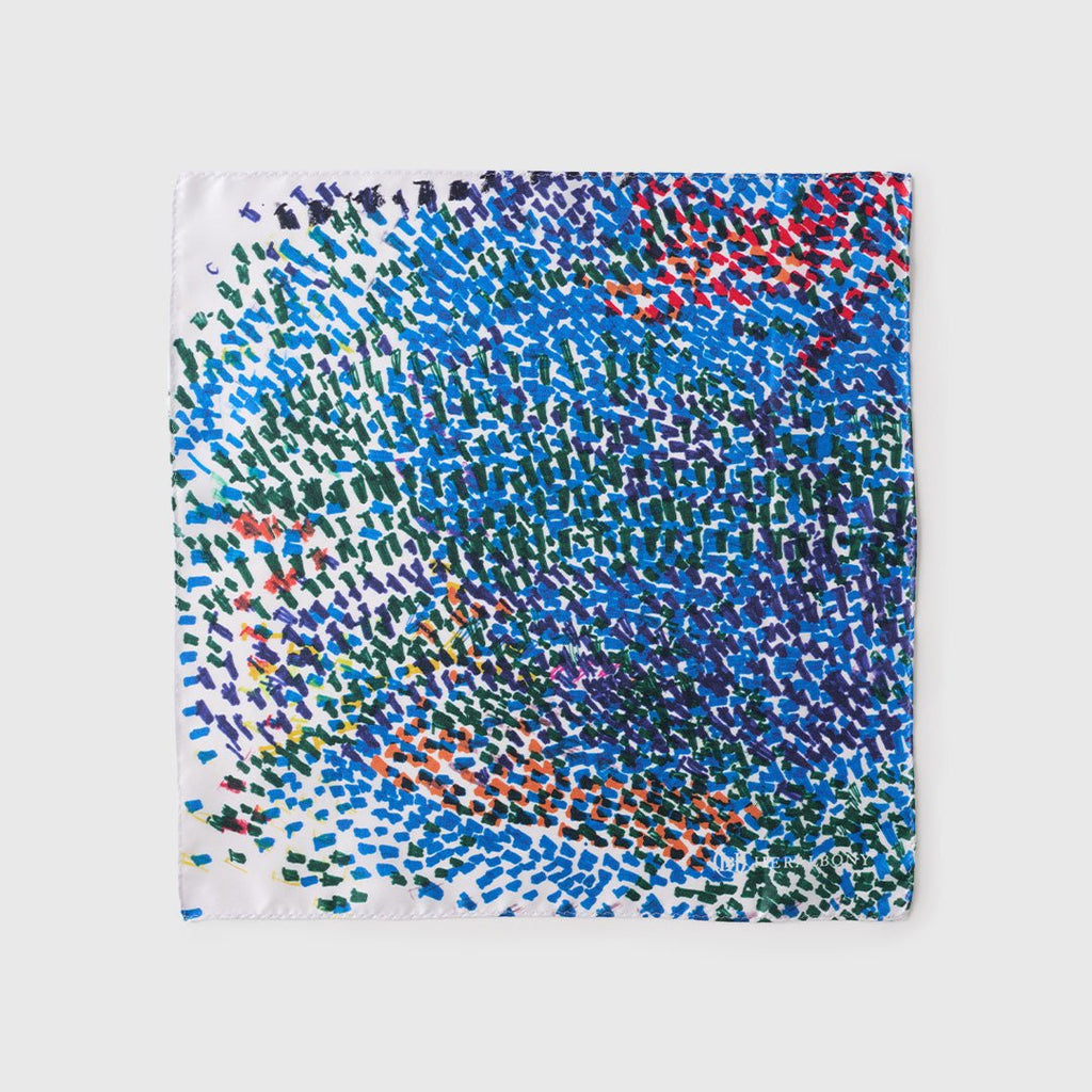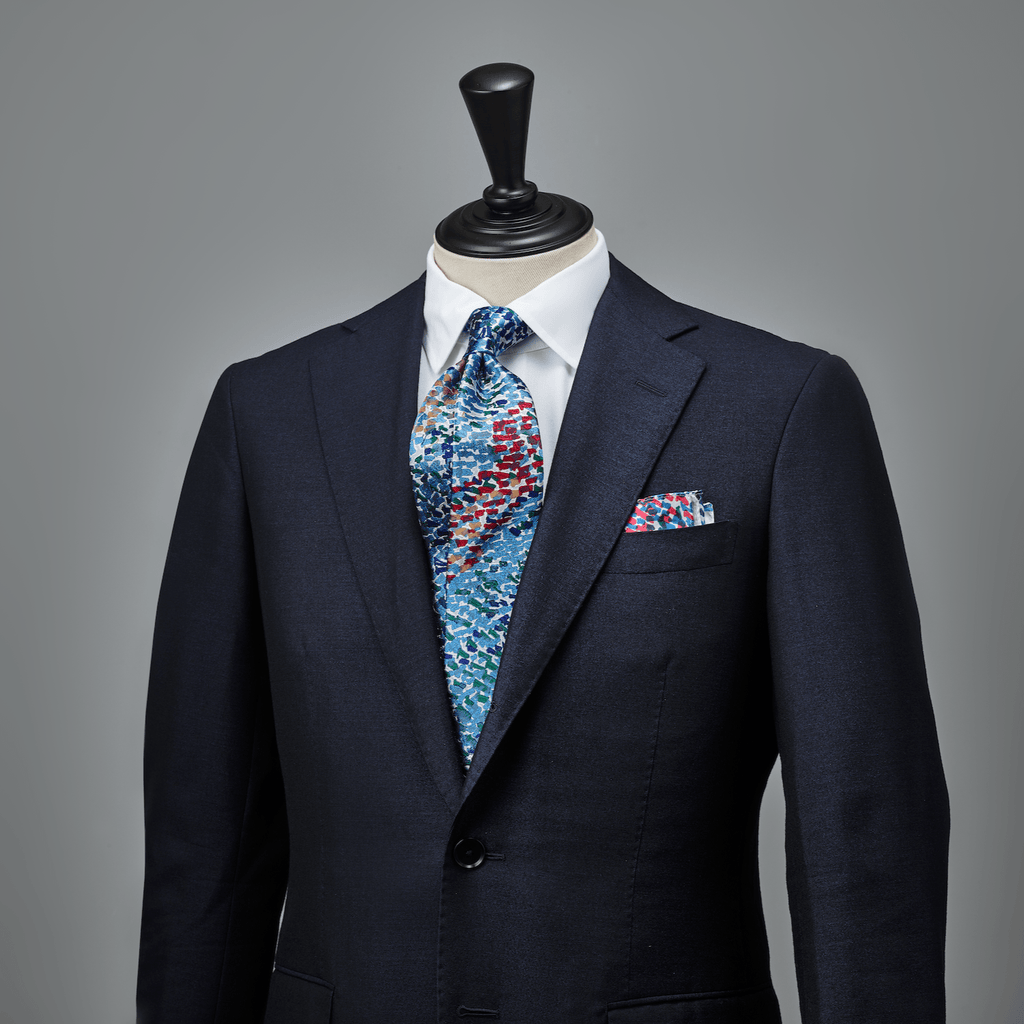 胸に挿すだけで華やぐポケットチーフは、ビジネスやフォーマルなシーンでのさり気ないアクセントに。シルクの光沢感とアートが、上品な遊び心を演出します。同じアートを起用したシルクネクタイと合わせれば、統一感のある洗練されたスタイリングが簡単に完成します。ビジネスシーン以外にも、パーティーシーンのドレスアップにも最適です。