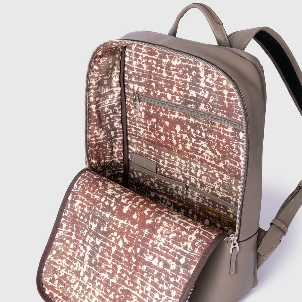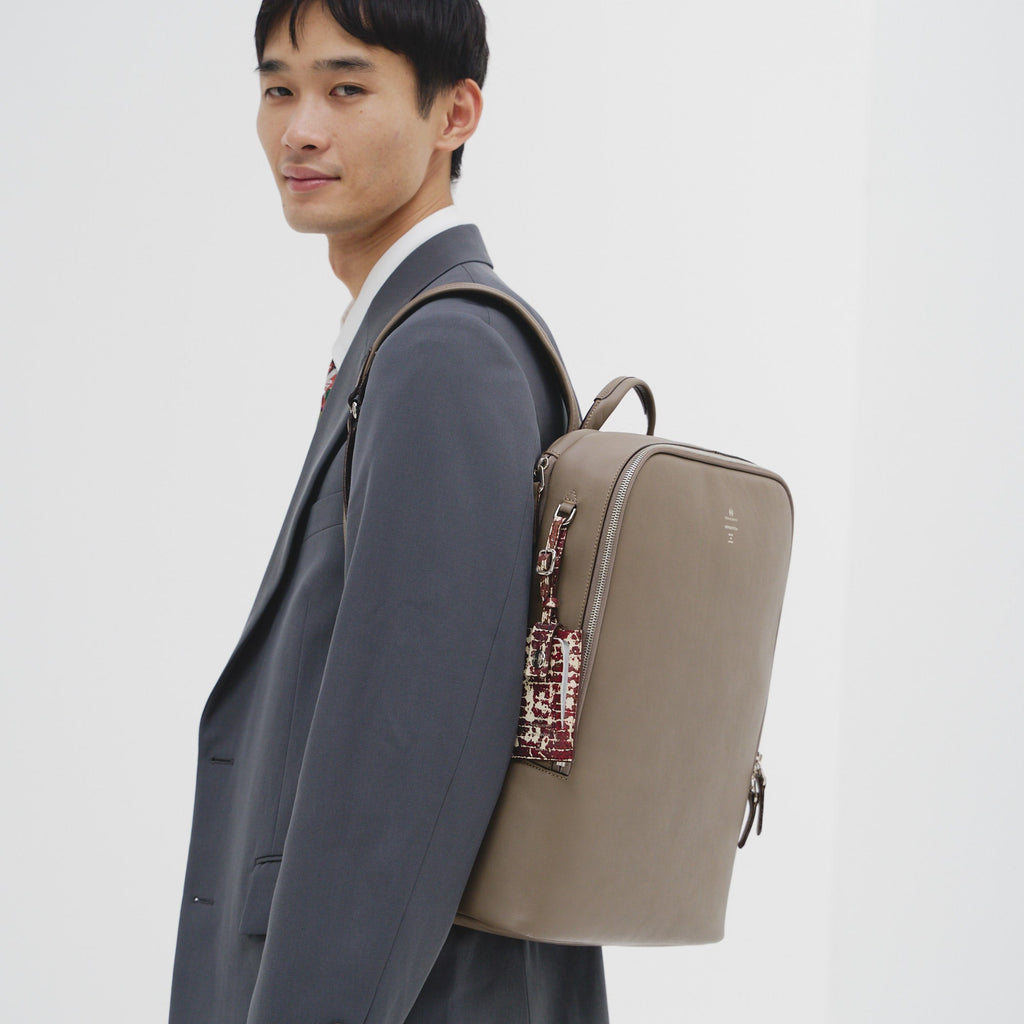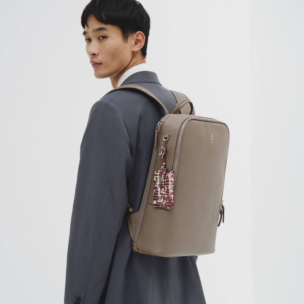 ロゴだけをあしらったミニマルなレザーリュックは、裏地にアートを起用することでオンオフ問わず馴染むスタイルに。ファスナーを開けるたびに、エネルギーあふれる異彩のアートが広がります。ビジネスから休日の旅行まで、幅広いシーンでご使用いただけます。