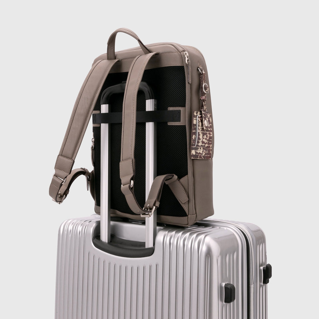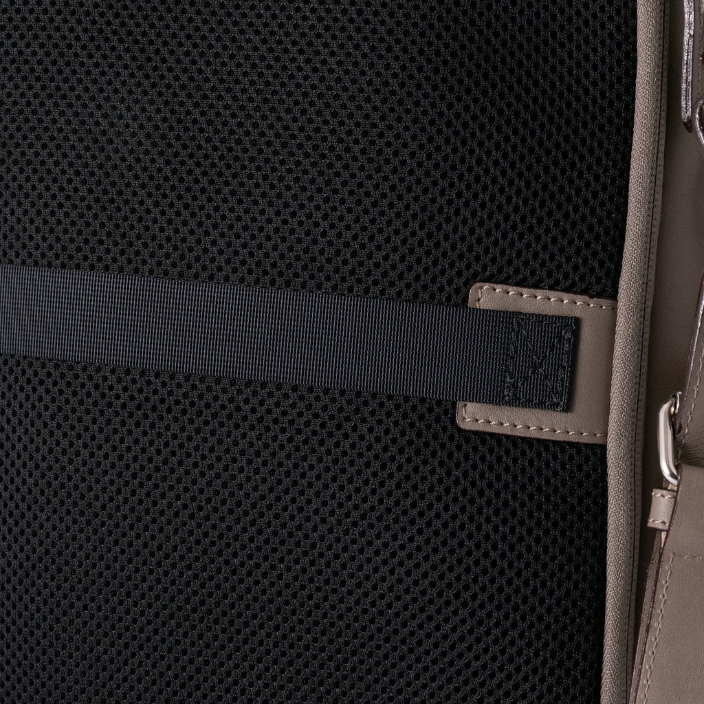 背面にはスーツケースのキャリーハンドルにリュックを固定できるキャリーループ付き。旅先や出張先での移動を快適にサポートします。