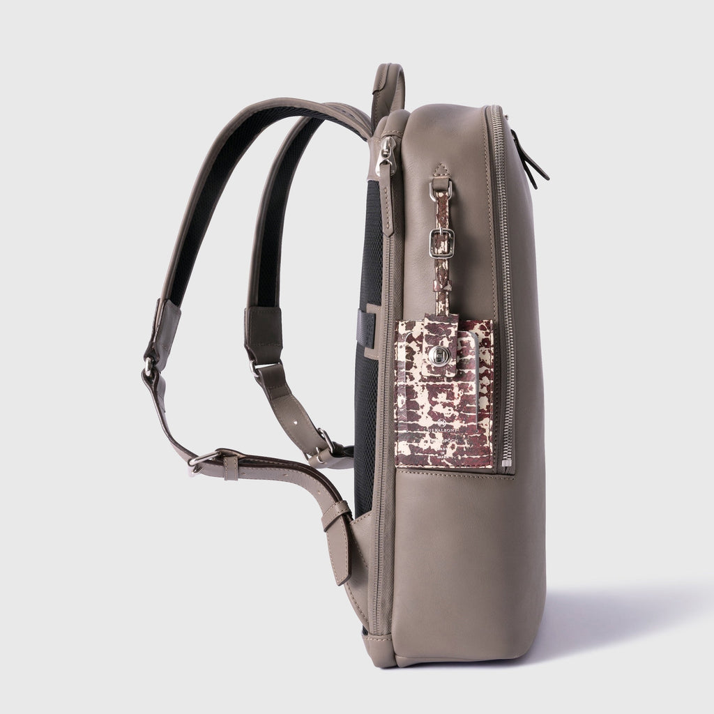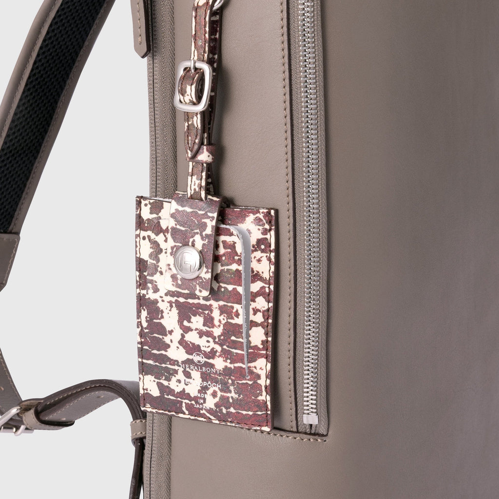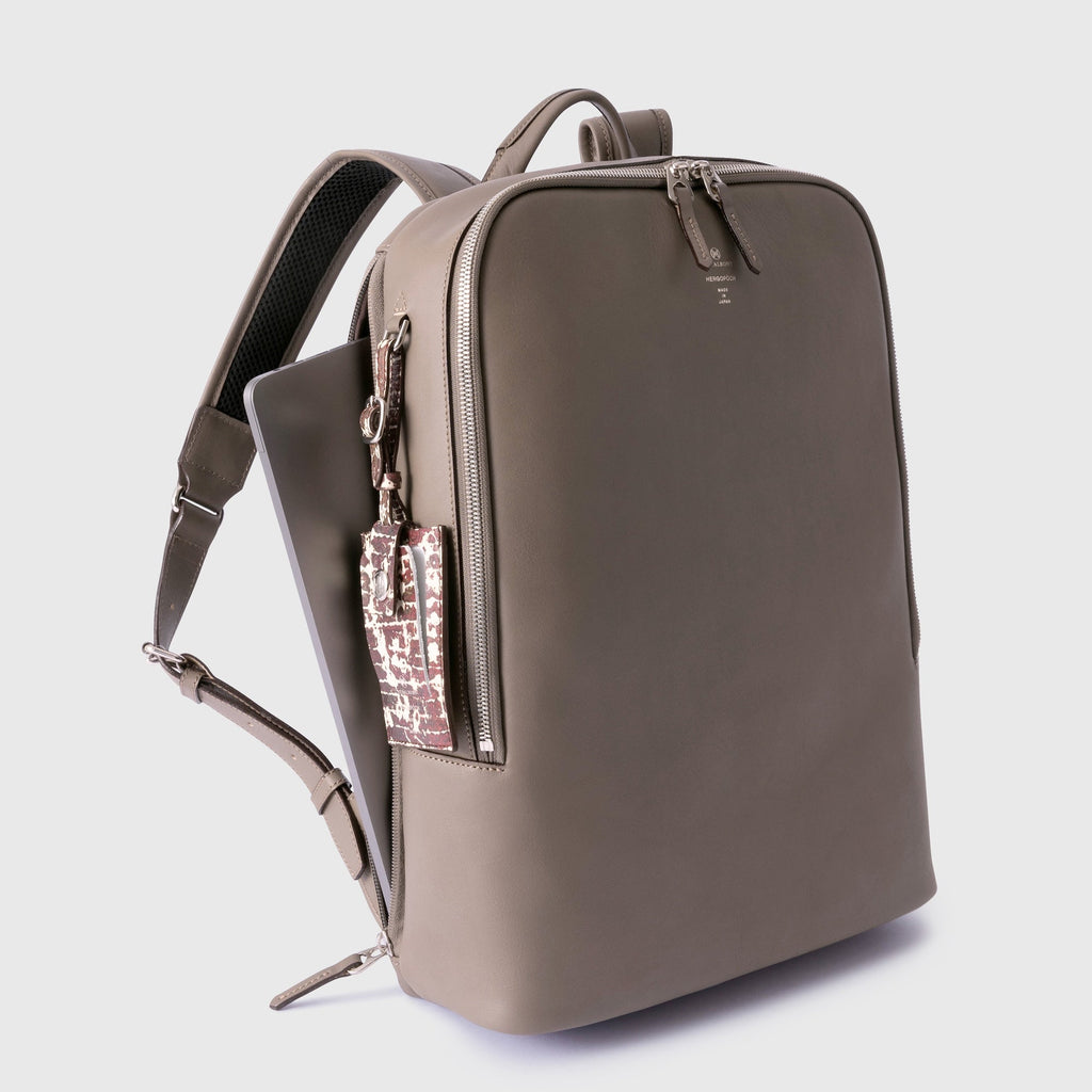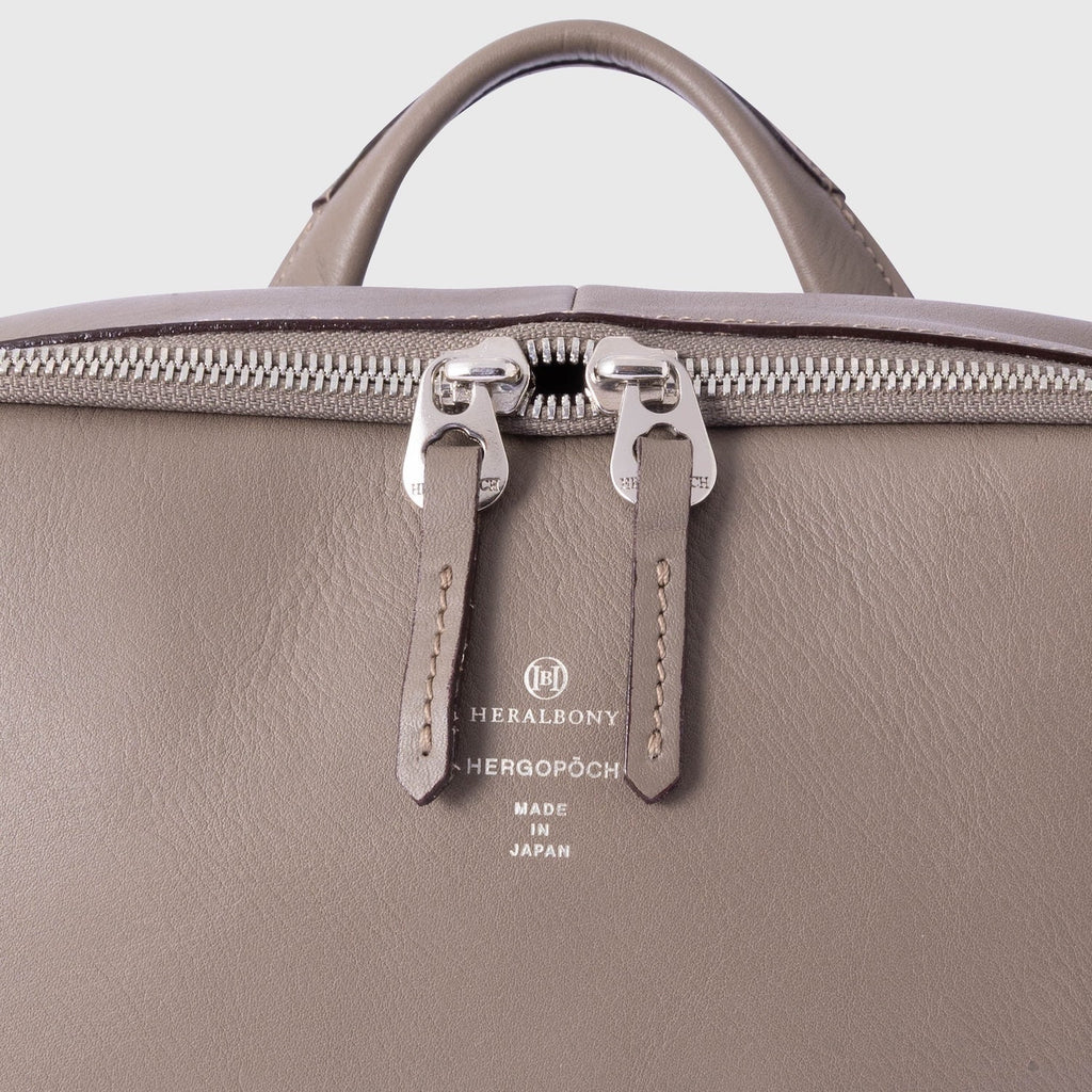 高級感あふれるレザーを使った、裏地でアートを楽しむバックパック。牛革の質感が活きるミニマルなデザインは、オンオフ問わずスタイリングを格上げします。アートをまとったパスケースは取り外し可能です。通気性が良いメッシュ素材の背面には、13インチ対応のPC用ルームも用意。スーツケースに取り付けられるキャリーループをつけ、ビジネスユースにも最適です。素材の開発からメイドインジャパンにこだわり、国内でも有数の熟練した職人の手によって仕立てられるレザーブランド「HERGOPOCH」とのダブルネームモデルです。