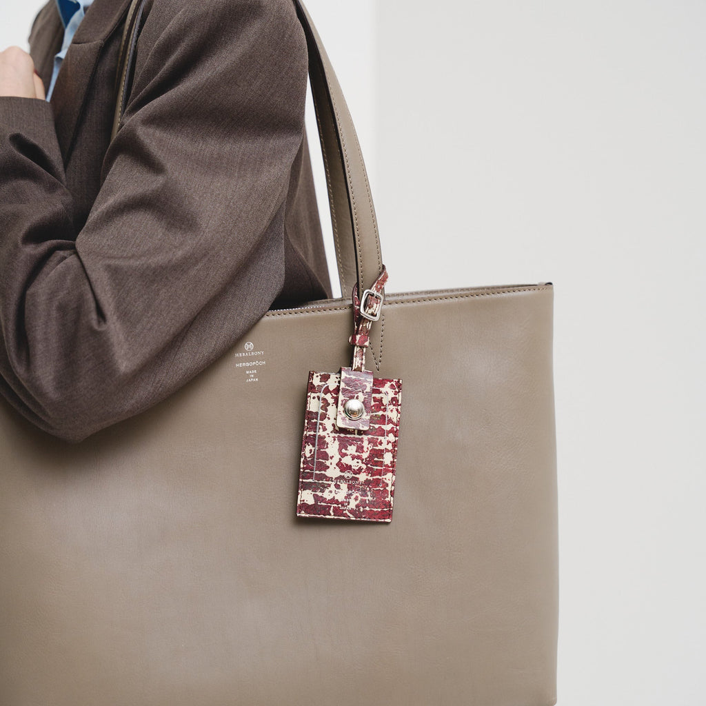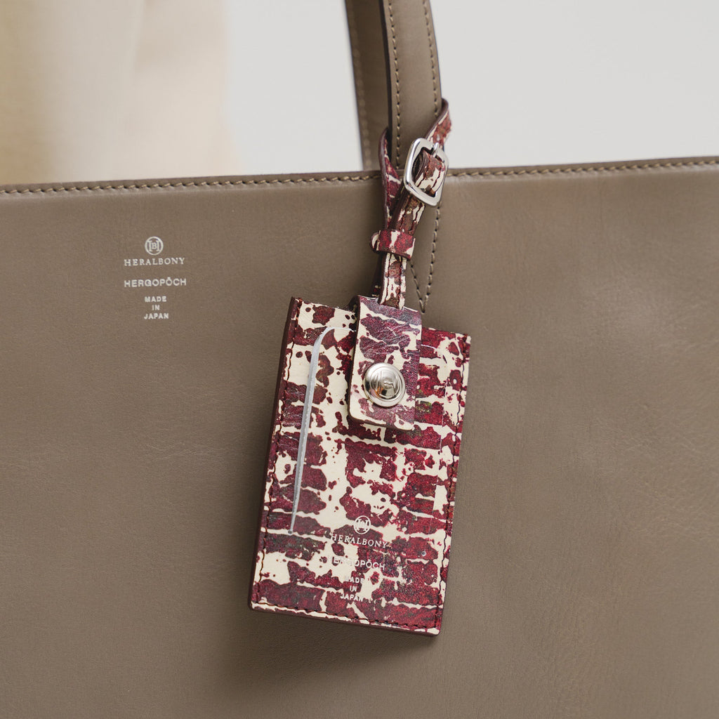 シンプルなデザインが上質なレザーを引き立たせるトートバッグ。裏地にアートを起用し、オンオフ問わずお使いいただけます。ファスナー付きのメインルームは内ポケットを多数備え、小物類もすっきりと収納。独立した外側収納や裏地と同じアートを使用したパスケースで、さっとスマホや定期券も取り出せます。素材の開発からメイドインジャパンにこだわり、国内でも有数の熟練した職人の手によって仕立てられるレザーブランド「HERGOPOCH」とのダブルネームモデルです。