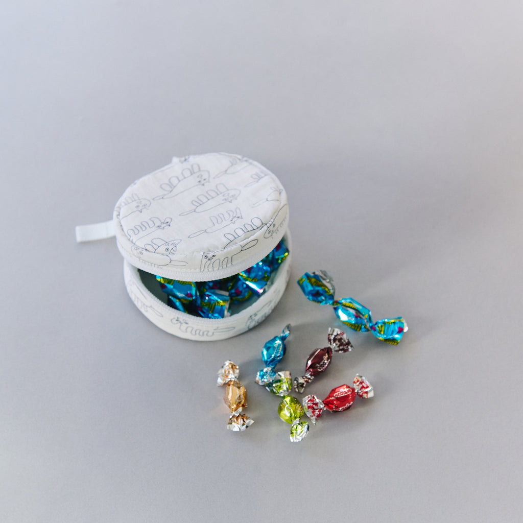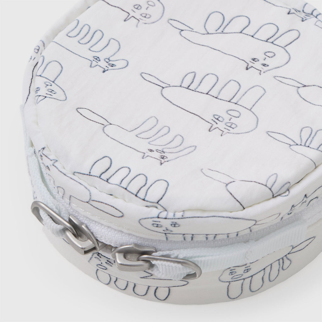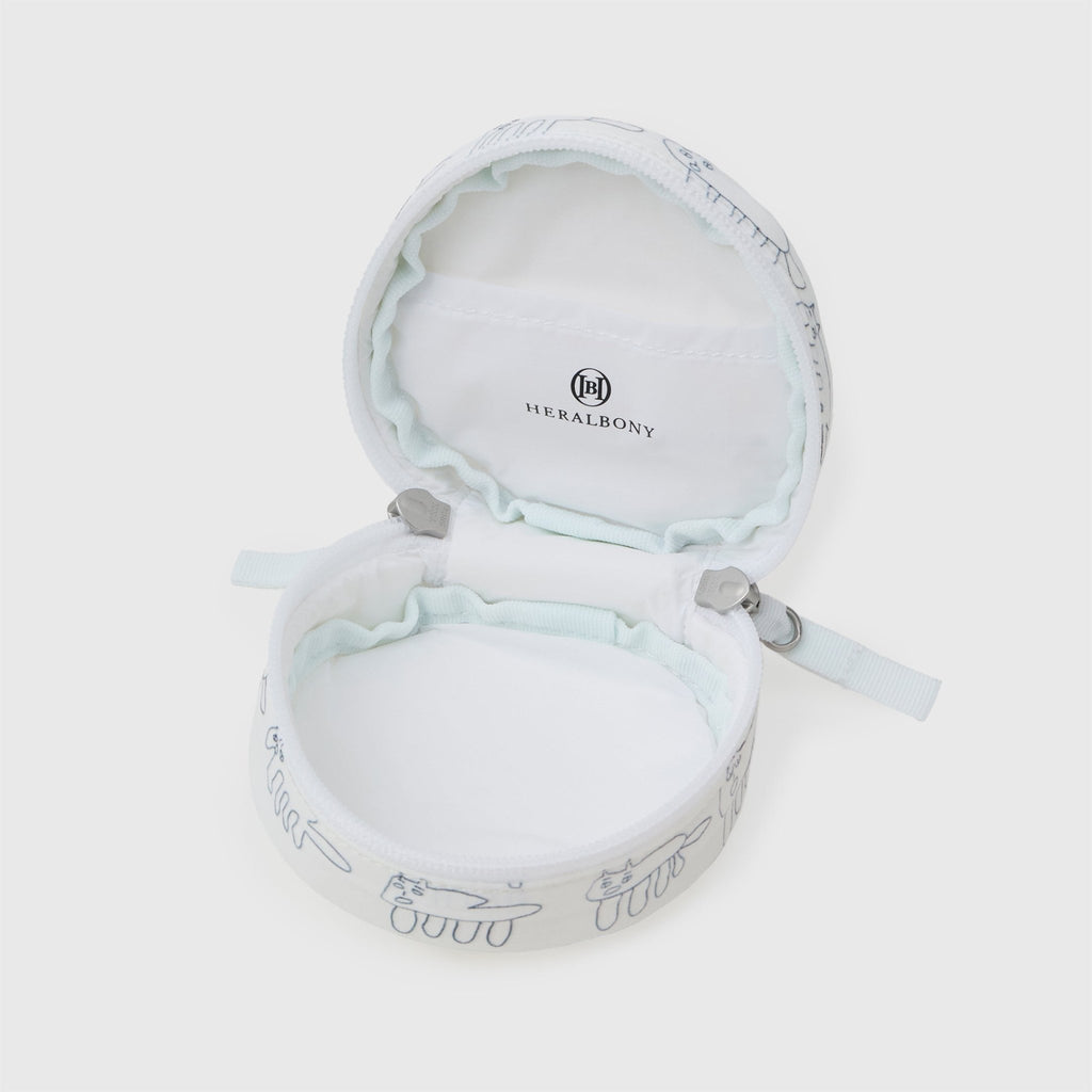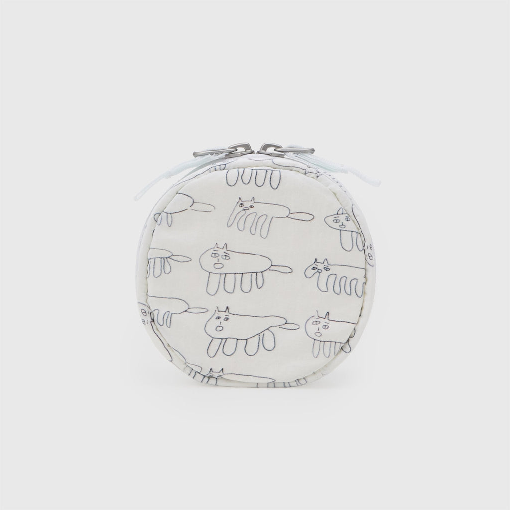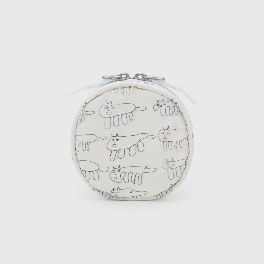 コロンとしたシルエットが特徴の、軽いナイロン素材のラウンドポーチ。イヤフォンやリップ、鍵などの小物を持ち運ぶのにぴったりなサイズ感です。内側には仕切りポケット付きで、常備薬などの小さなアイテムもしっかり収納できます。