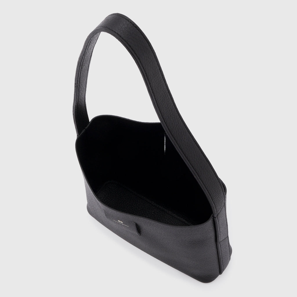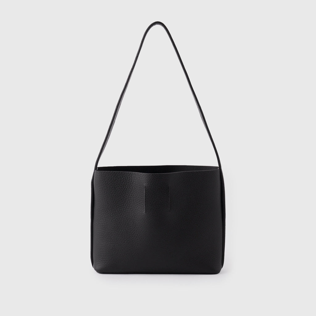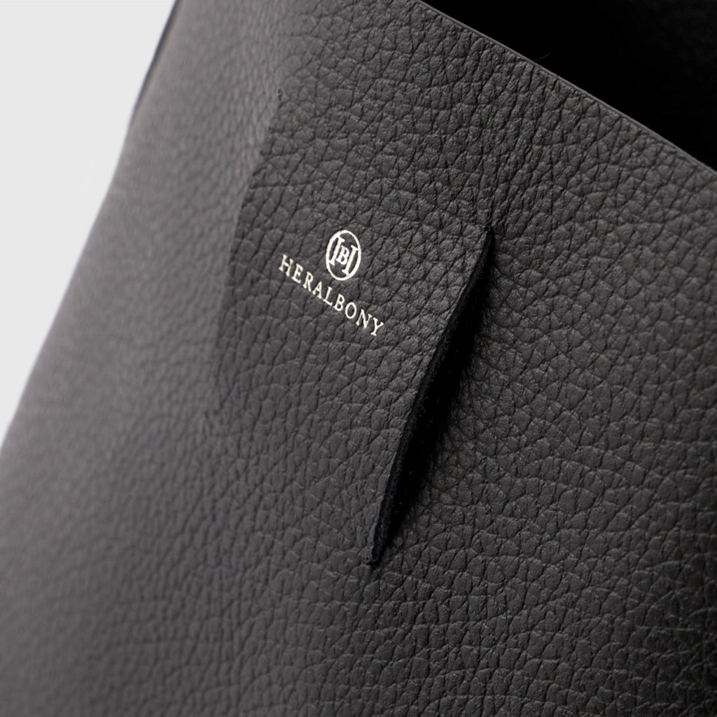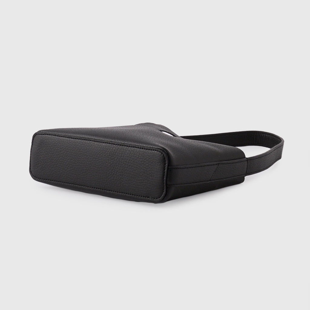 しなやかな漆黒のレザーは、シルクのスカーフと組み合わせることでさらに上質な存在感を引き立たせます。アートを主役にするため、極力まで装飾を削ぎ落としたミニマルなデザインです。