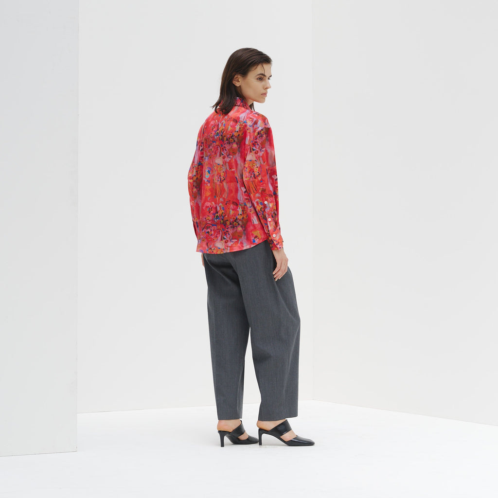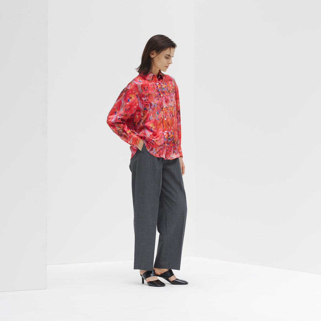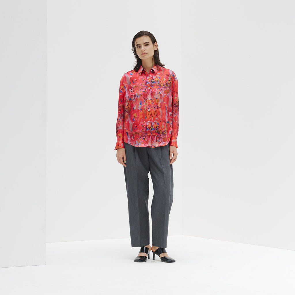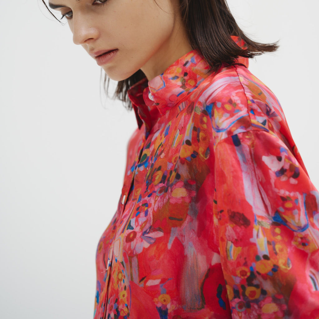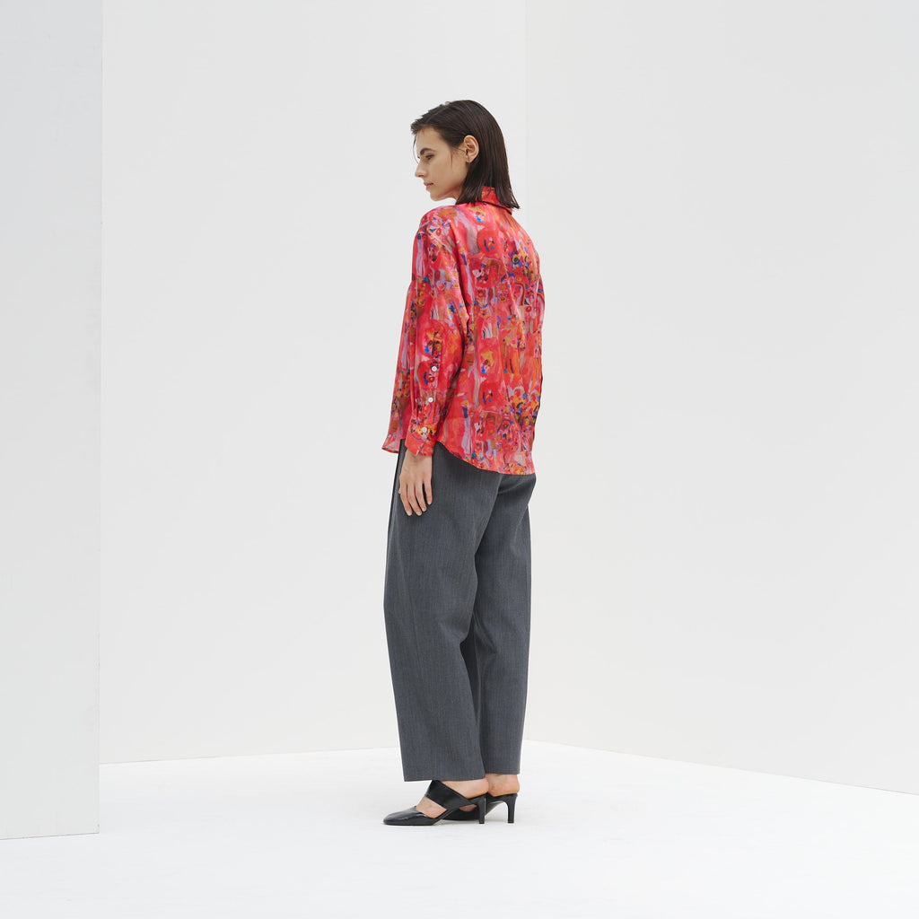 ほどよくゆとりをもたせたシルエットに、襟やカフスまでプリントした異彩のアートが洗練された存在感を演出。シンプルなジャケットやボトムスを合わせるだけで、上品かつ印象的なスタイリングが完成します。
