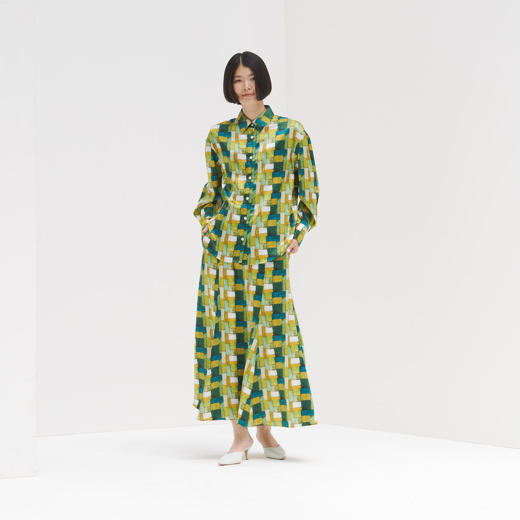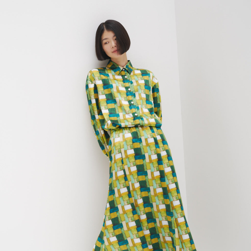 ほどよくゆとりをもたせたシルエットに、襟やカフスまでプリントした異彩のアートが洗練された存在感を演出。シンプルなジャケットやボトムスを合わせるだけで、上品かつ印象的なスタイリングが完成します。