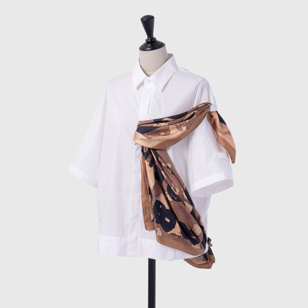 Nous avons utilisé de la soie 100 % pour reproduire fidèlement le coup de pinceau unique de l'artiste. Sa texture ferme et lisse vous donnera envie de la toucher à jamais, ajoutant une touche unique à votre tenue quotidienne.