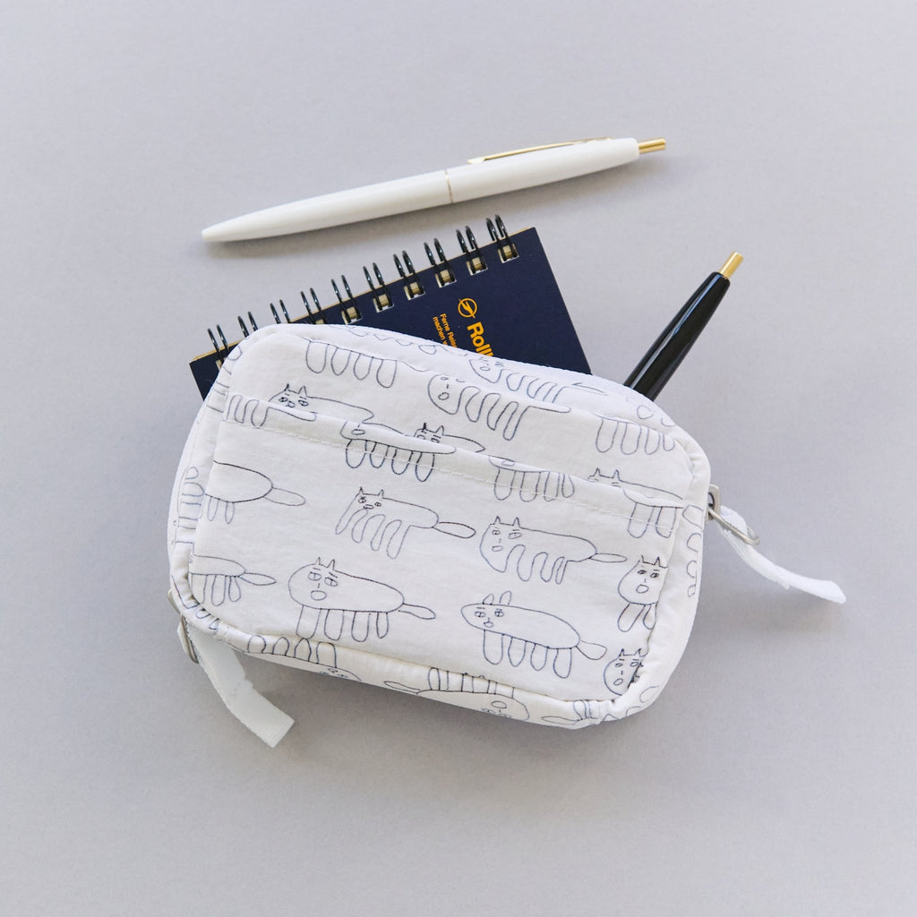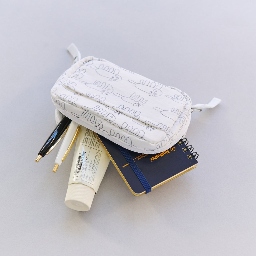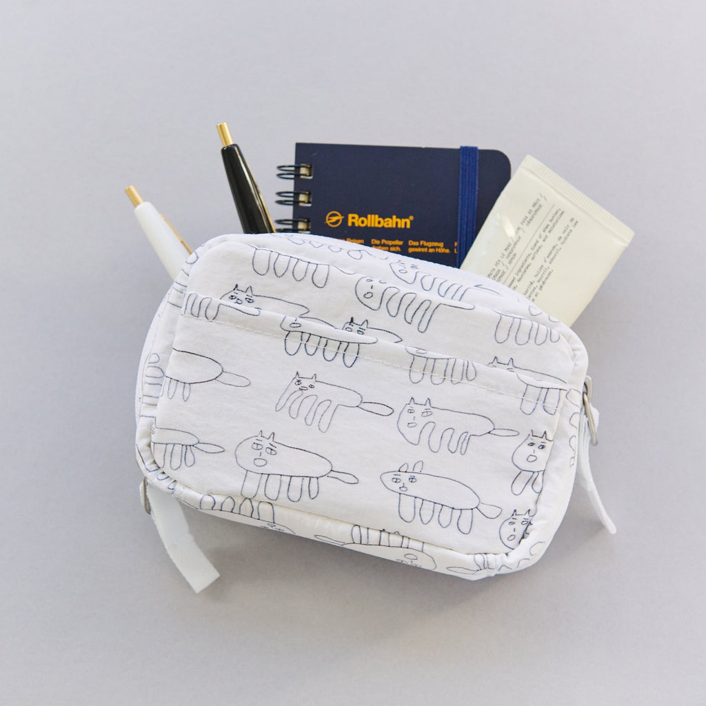 日用品をすっきり収納しながら、持ち運びやすい程よいサイズ感。ジッパーと内装のカラーリングをアートごとに変え、バッグの中を明るく彩るポーチに仕上げました。