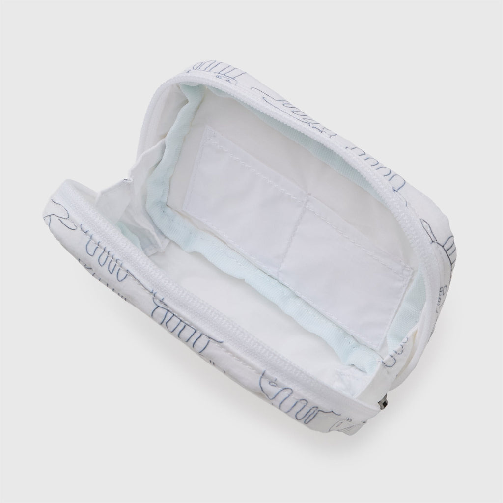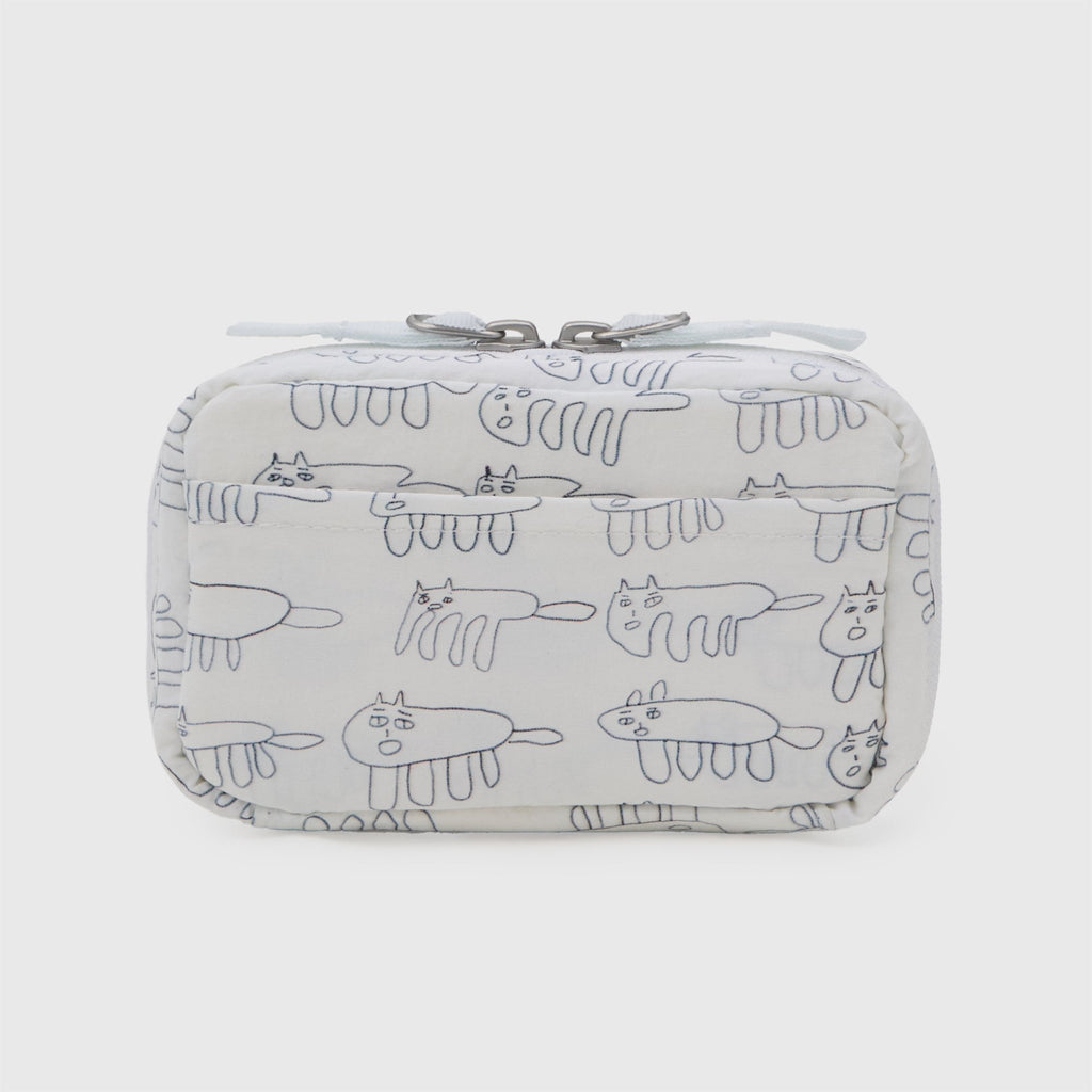 軽くて丈夫なナイロン素材を使用したスクエアタイプのポーチ。開口部が大きく開くので、メイク用品やガジェット類をスマートに取り出すことができます。内側には仕切りポケットと小物ポケット付きで、こまごましたアイテムもしっかり収納できます。