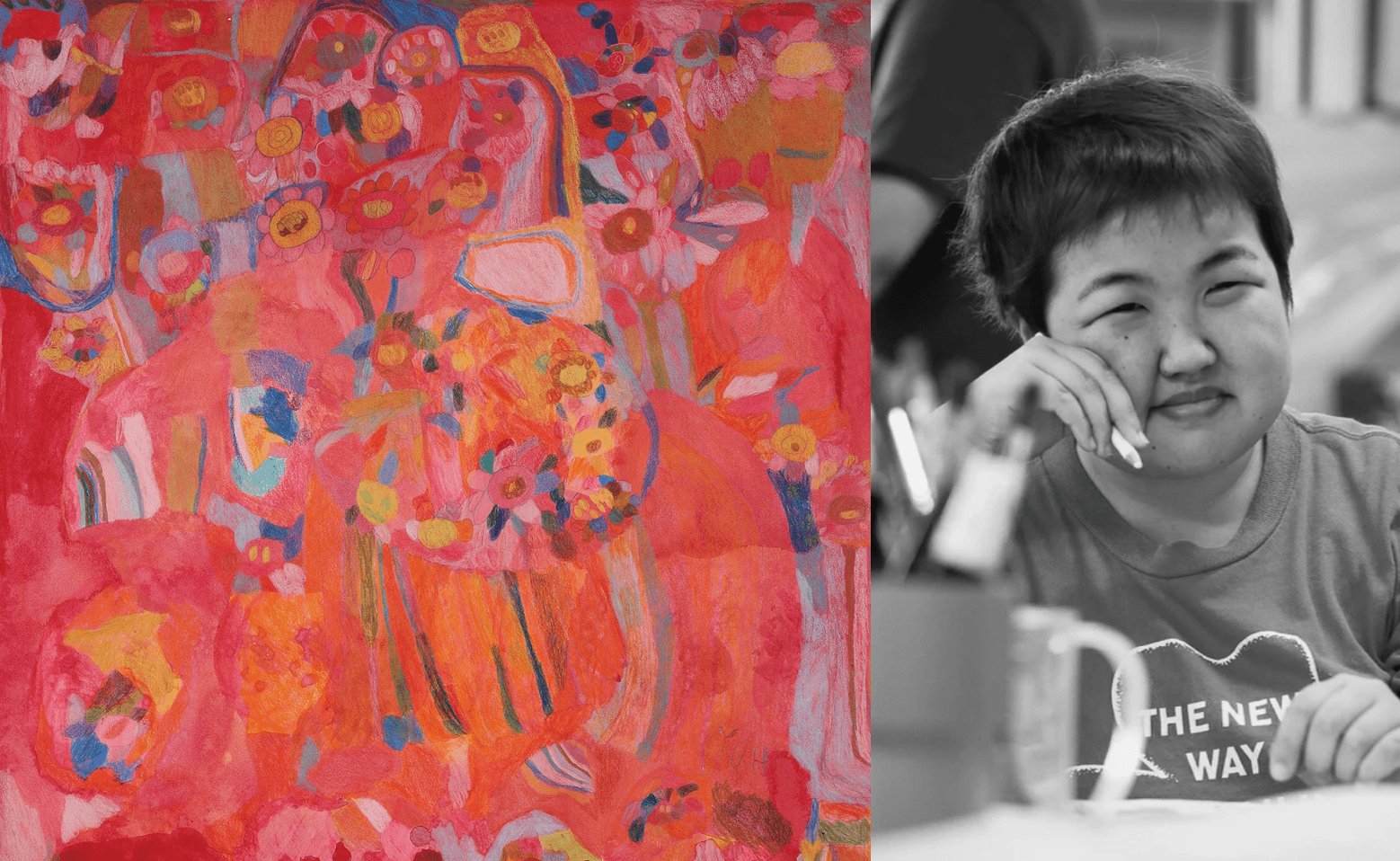 Née à Fukuoka en 1988, un dessin de personnage qu'elle avait réalisé dans le coin de son journal a attiré l'attention d'un enseignant d'une école spécialisée, et ses illustrations ont été utilisées dans un calendrier pour les Special Olympics Nippon Fukuoka, ce qui l'a inspirée à aspirer à une carrière dans la peinture. Elle crée à la fois des dessins au crayon de couleur aux tons doux et des aquarelles, ainsi que des peintures acryliques aux lignes vives et audacieuses.