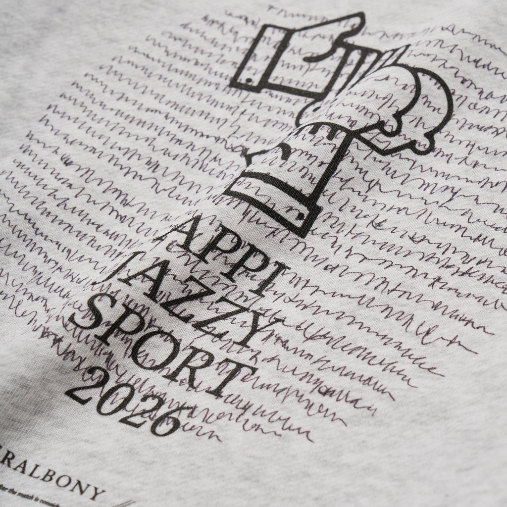 2026年3月に開催される、音楽とスポーツの融合フェス「APPI JAZZY SPORT 2026 Supported by HERALBONY」コラボレーションアイテムのクルーネックプルオーバー。