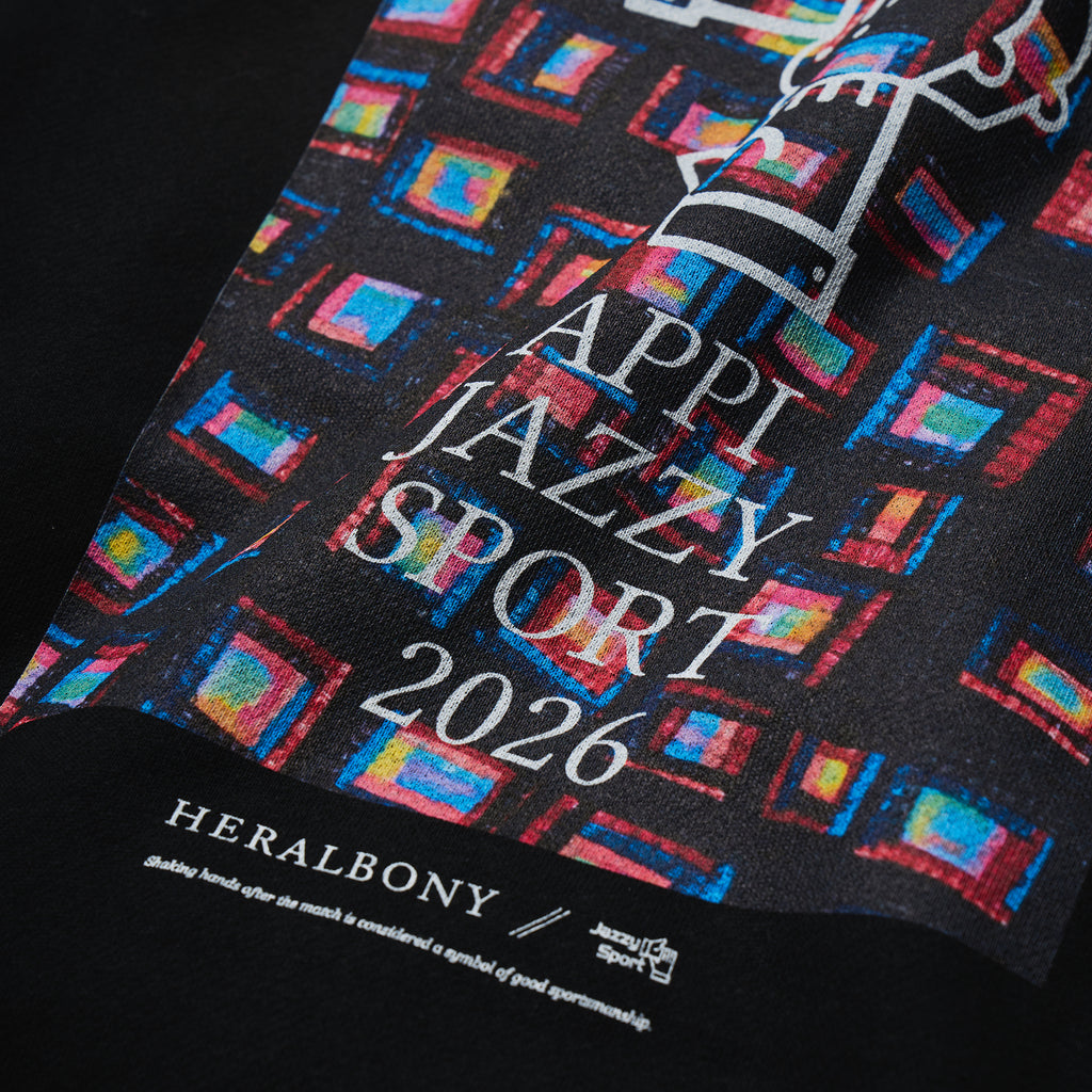 2026年3月に開催される、音楽とスポーツの融合フェス「APPI JAZZY SPORT 2026 Supported by HERALBONY」コラボレーションアイテムのクルーネックプルオーバー。