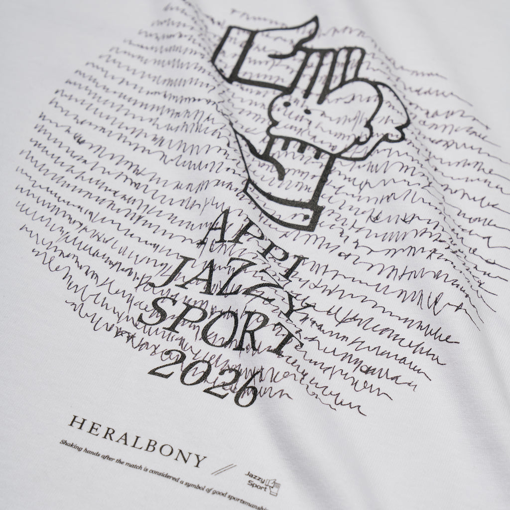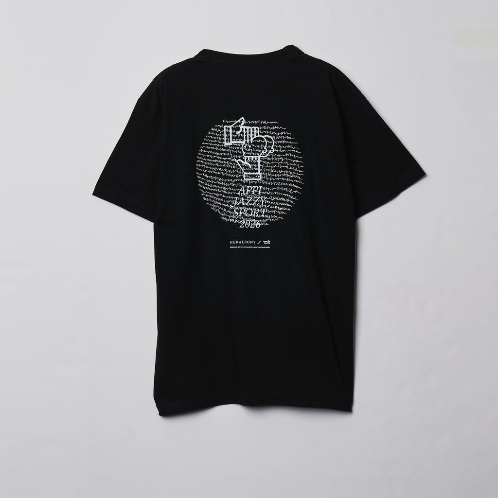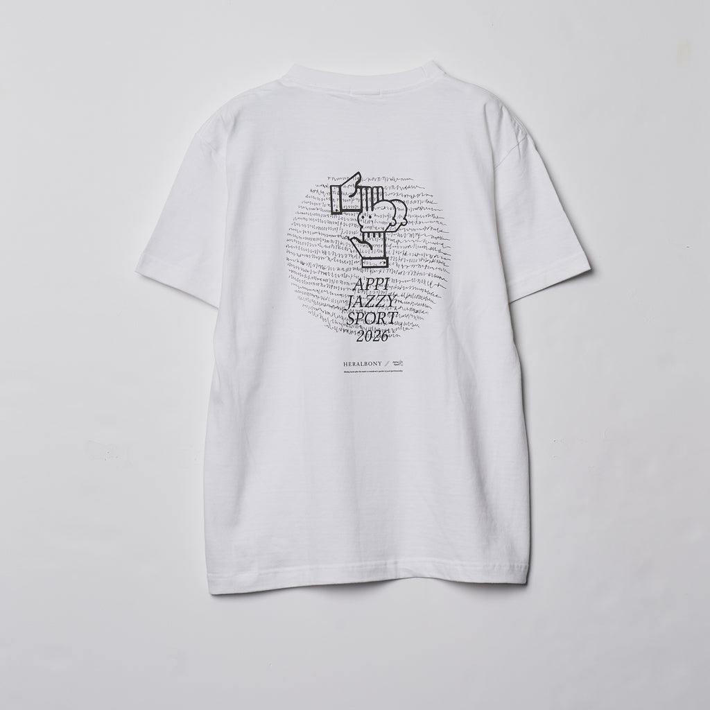 2026年3月に開催される、音楽とスポーツの融合フェス「APPI JAZZY SPORT 2026 Supported by HERALBONY」コラボレーションアイテムのTシャツ。