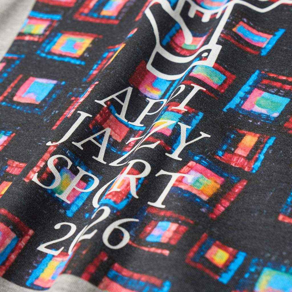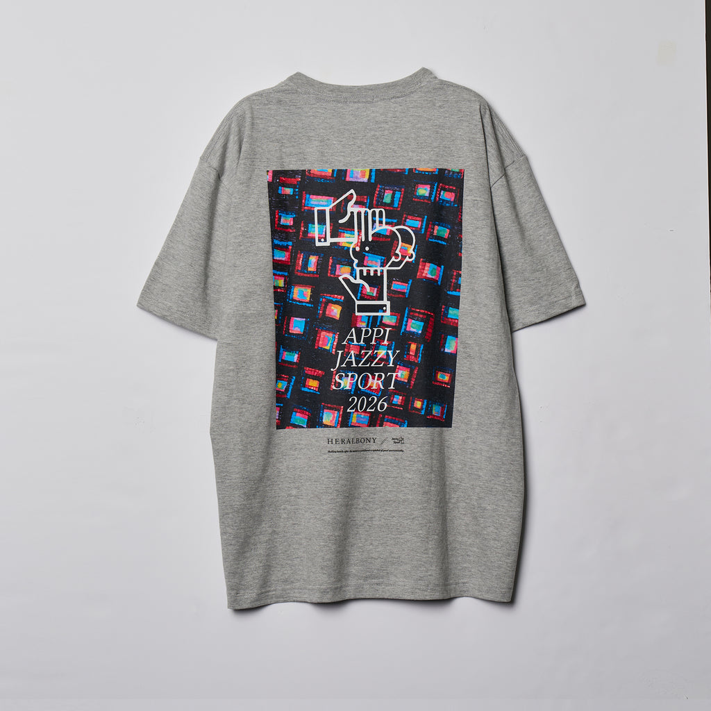 2026年3月に開催される、音楽とスポーツの融合フェス「APPI JAZZY SPORT 2026 Supported by HERALBONY」コラボレーションアイテムのTシャツ。