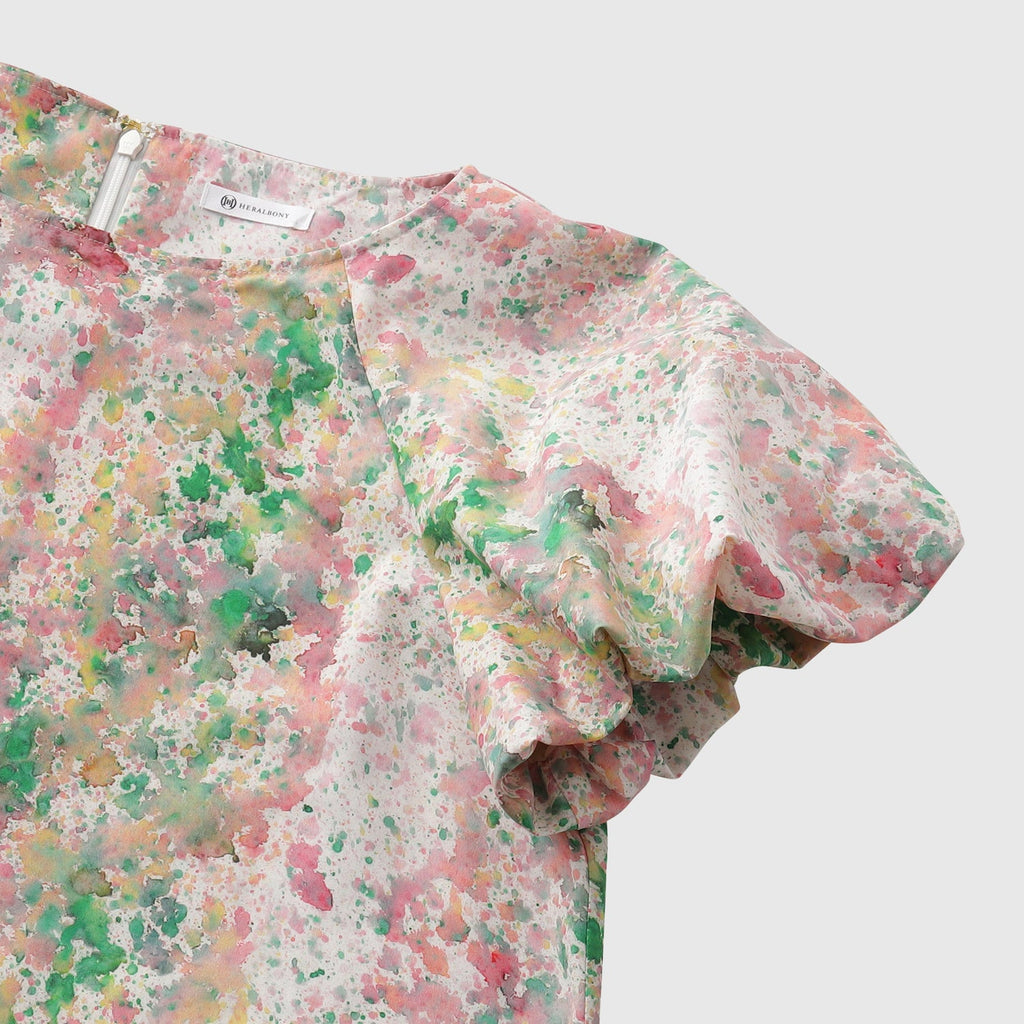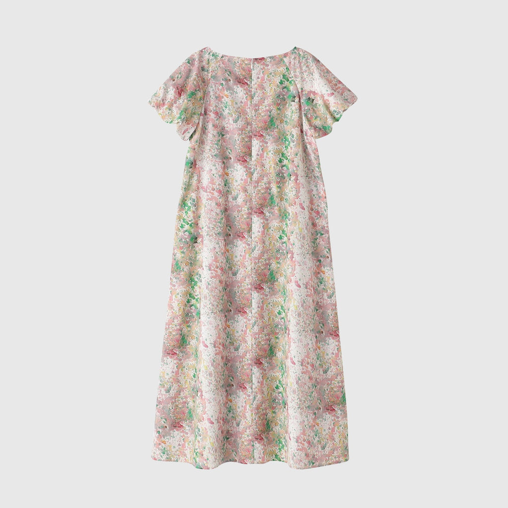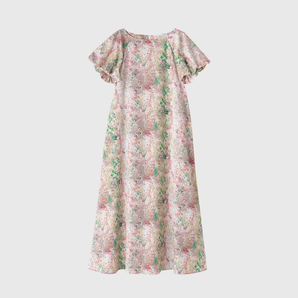 バルーンスリーブが華やかな印象のワンピース。肩から裾にかけてゆるやかに広がるシルエットで、甘くなりすぎない大人のサマードレスに仕上げました。ご自宅で手洗い可能なお手入れのしやすさもポイントです。